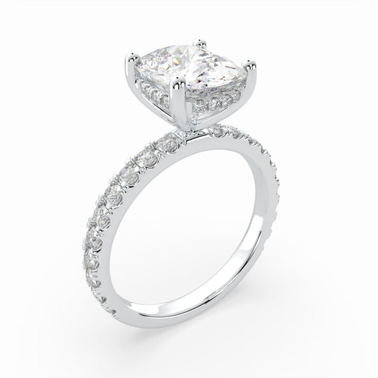 Cushion Solitaire Engagement Ring with diamonds on the Band & hidden halo LR003