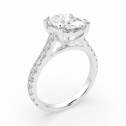 Cushion Solitaire Cathedral Engagement Ring set with diamonds on the band LR013W