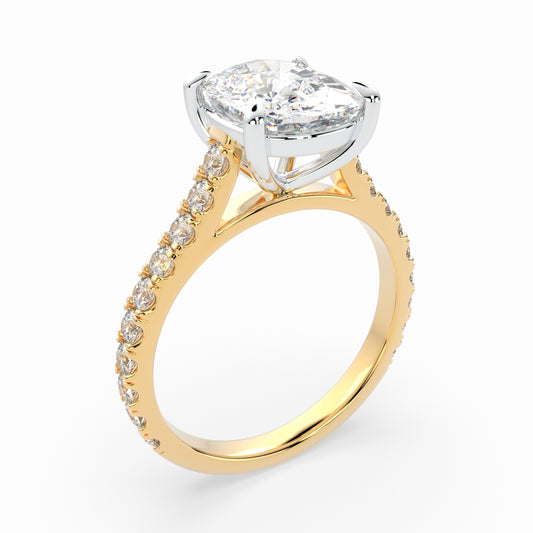 Cushion Solitaire Cathedral Engagement Ring set with diamonds on the band LR013Y