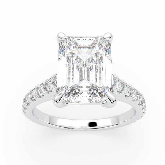 Emerald Cut Solitaire Engagement Ring with hidden halo LR014W