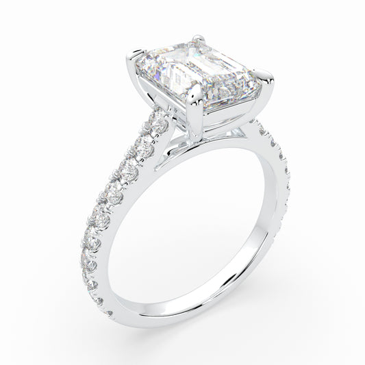 Emerald Cut Solitaire Cathedral Engagement Ring with diamonds set on band LR015W