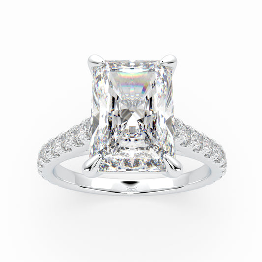 Radiant Cut Solitaire Cathedral Engagement Ring with diamonds on band LR010W