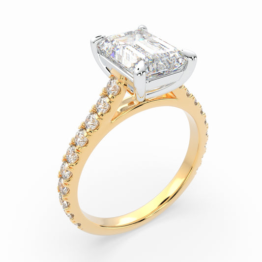 Emerald Cut Solitaire Cathedral Engagement Ring with diamonds set on band LR015Y