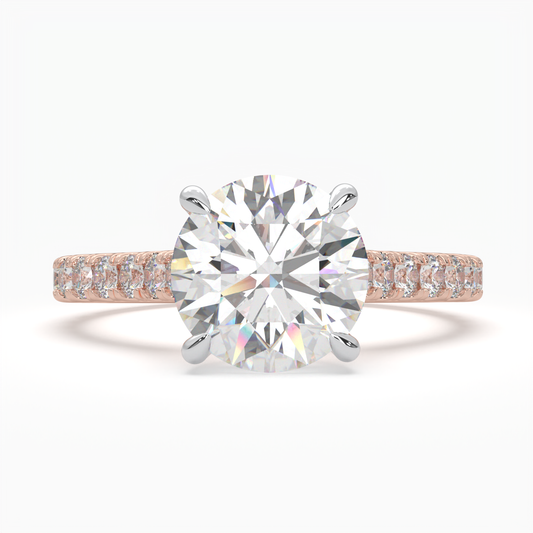 Round Solitaire Cathedral Engagement Ring with diamonds on band LR017Y