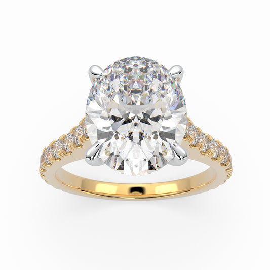 Oval Solitaire Cathedral Engagement Ring with diamonds on band LR021Y