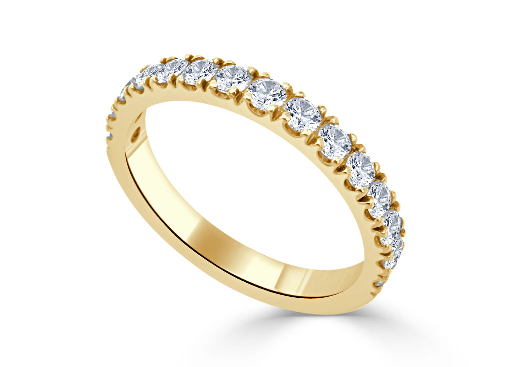 18ct yellow gold ladies wedding ring set with 15=.60ct round brilliant cut diamond.