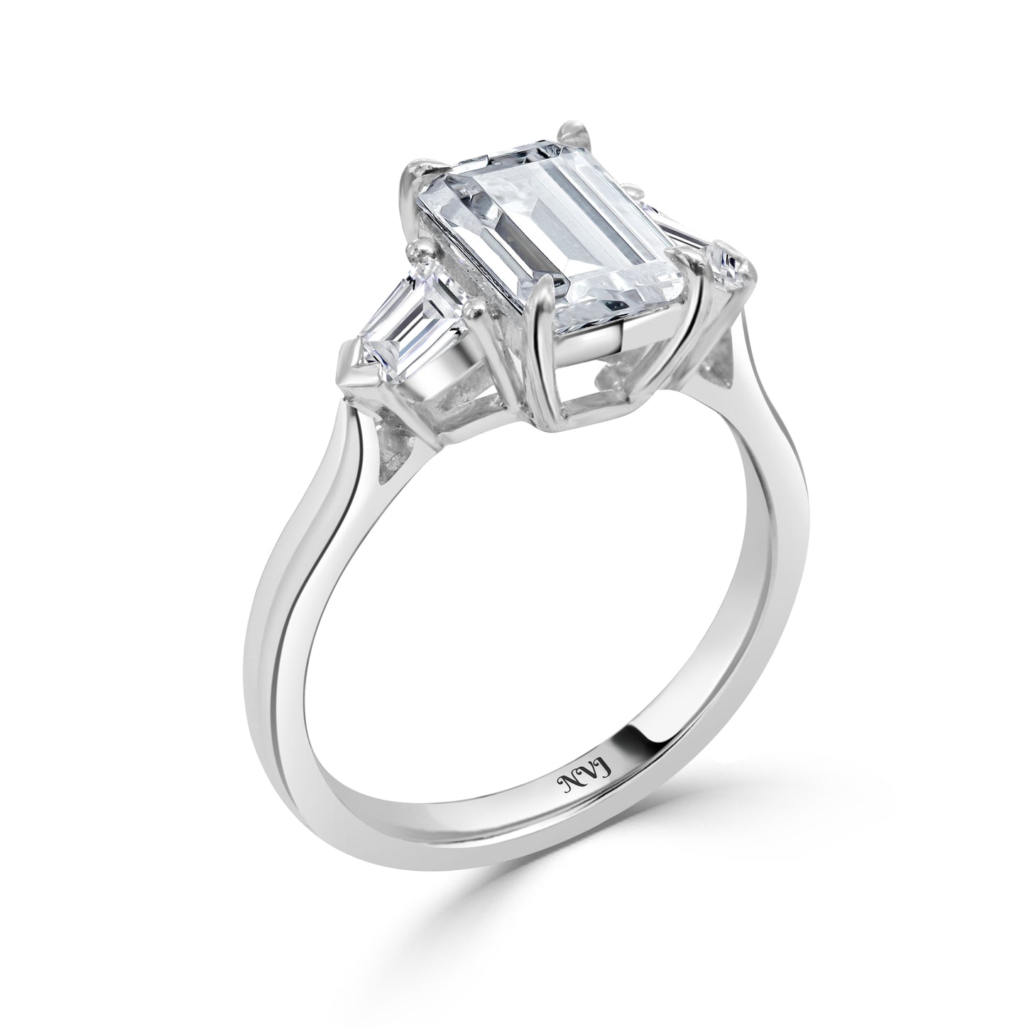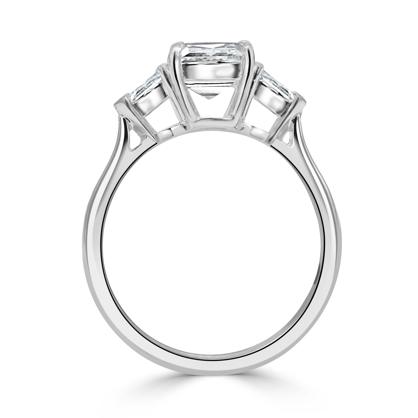 Diamond: 2.57ct Radiant cut lab grown diamond. Certificate ID: LG20283297 Colour F, Clarity VS1. Side Bullet Diamonds: 2=49ct
