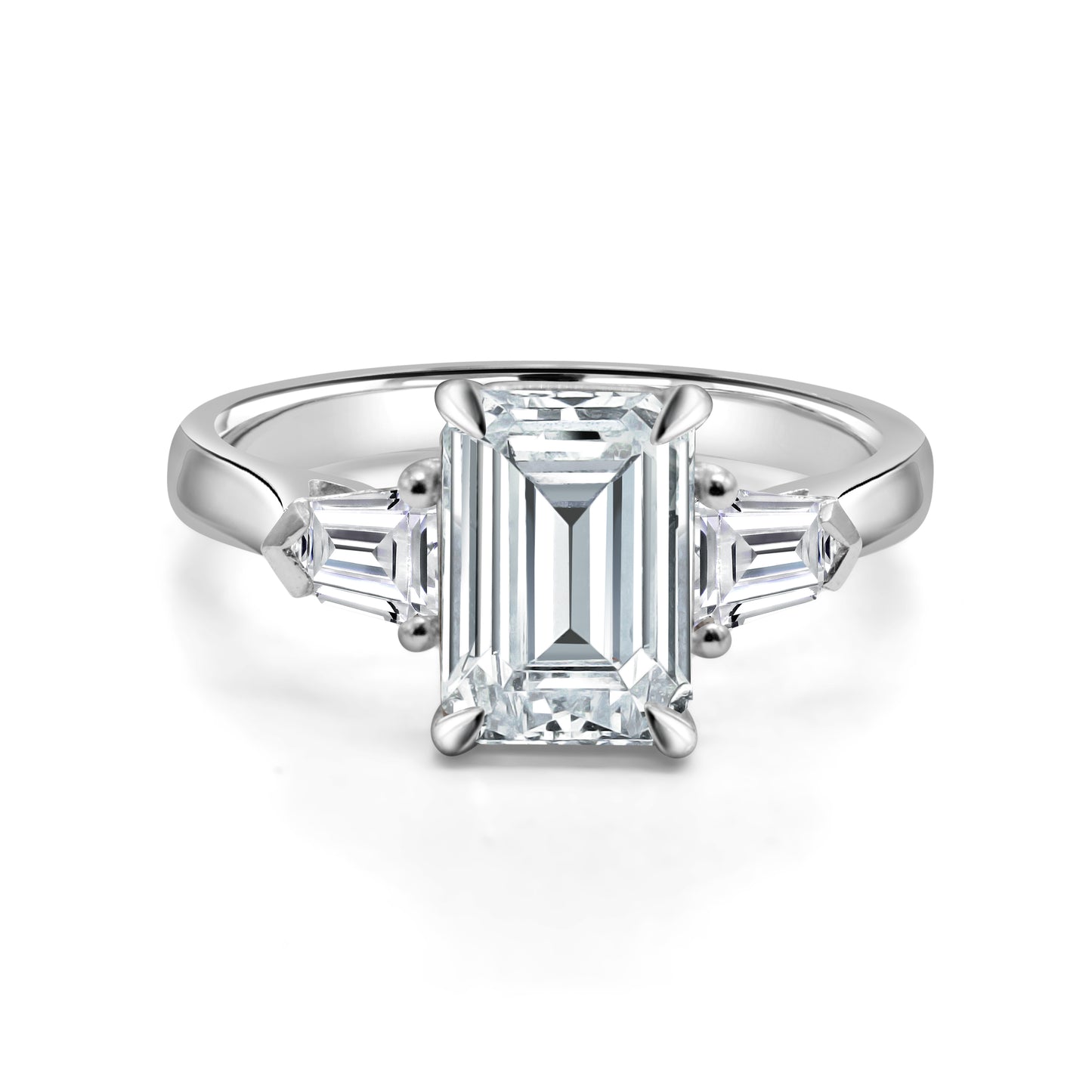 Indulge in luxury with our 2.57ct Radiant cut lab grown diamond engagement ring. Set in 18ct White Gold with 2 Bullet Diamonds, this ring exudes sophistication and elegance. Elevate your love with this exquisite piece, crafted with the finest materials and attention to detail.
