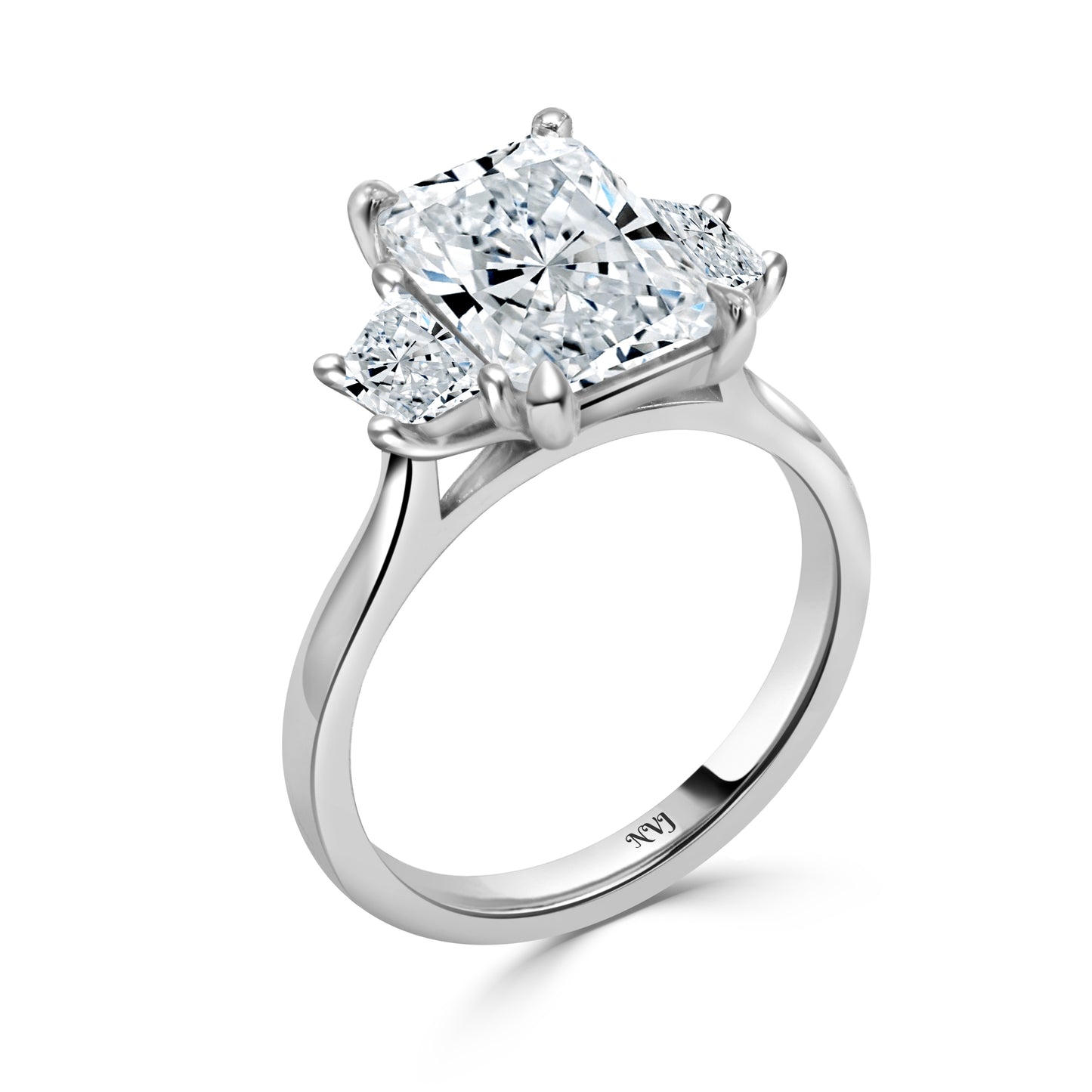 3.01ct Radiant cut lab grown diamond Trilogy engagement ring