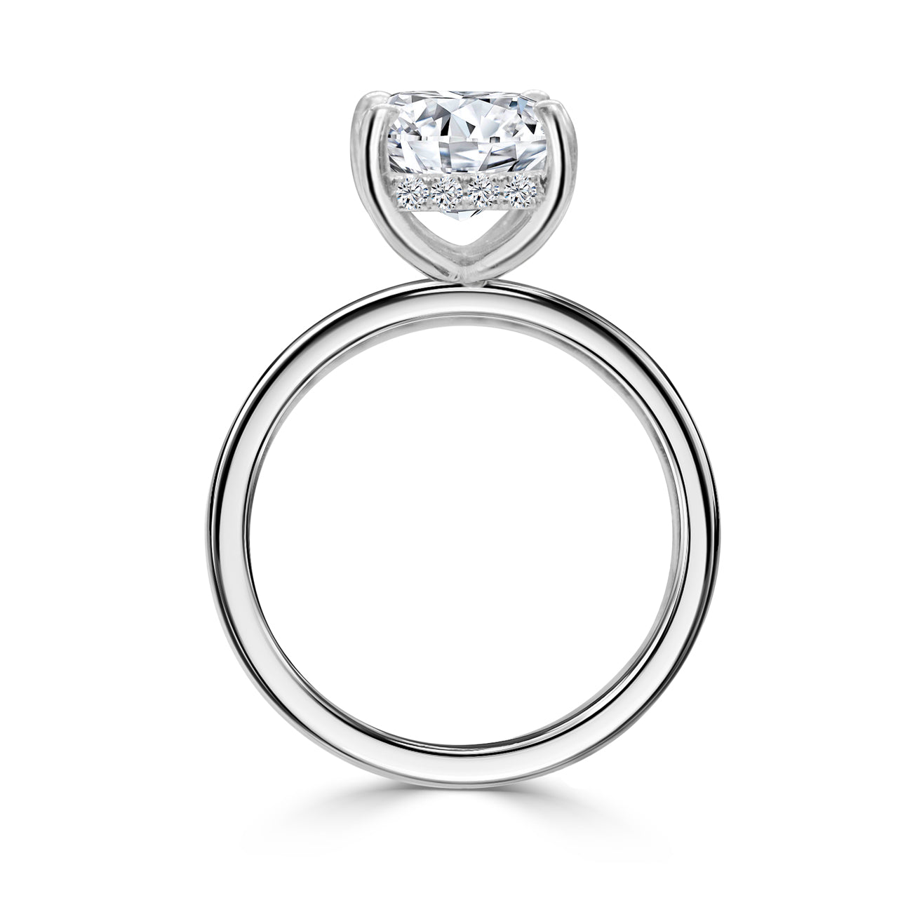 Indulge in luxury with our 4.05ct Cushion cut lab grown diamond engagement ring. Crafted in 18ct white Gold, this exquisite ladies engagement ring features a hidden halo for added elegance. Upgrade your love story with this premium piece, perfect for the sophisticated and exclusive bride.