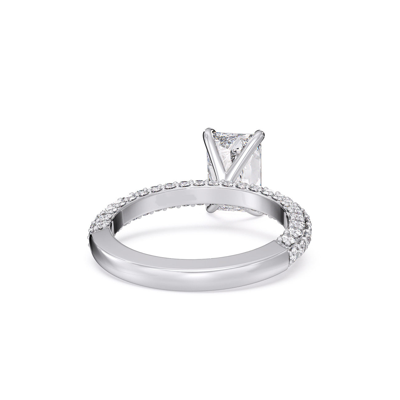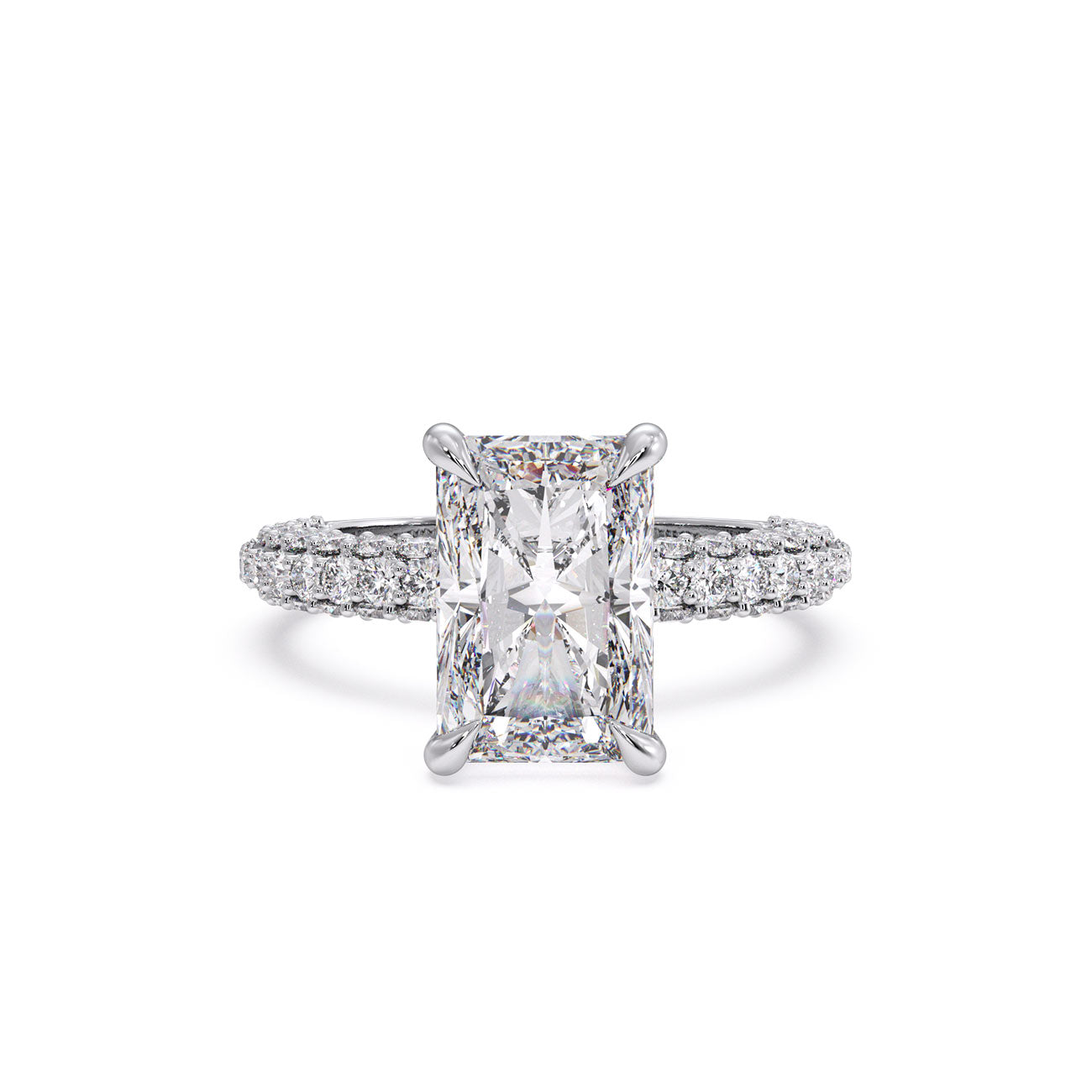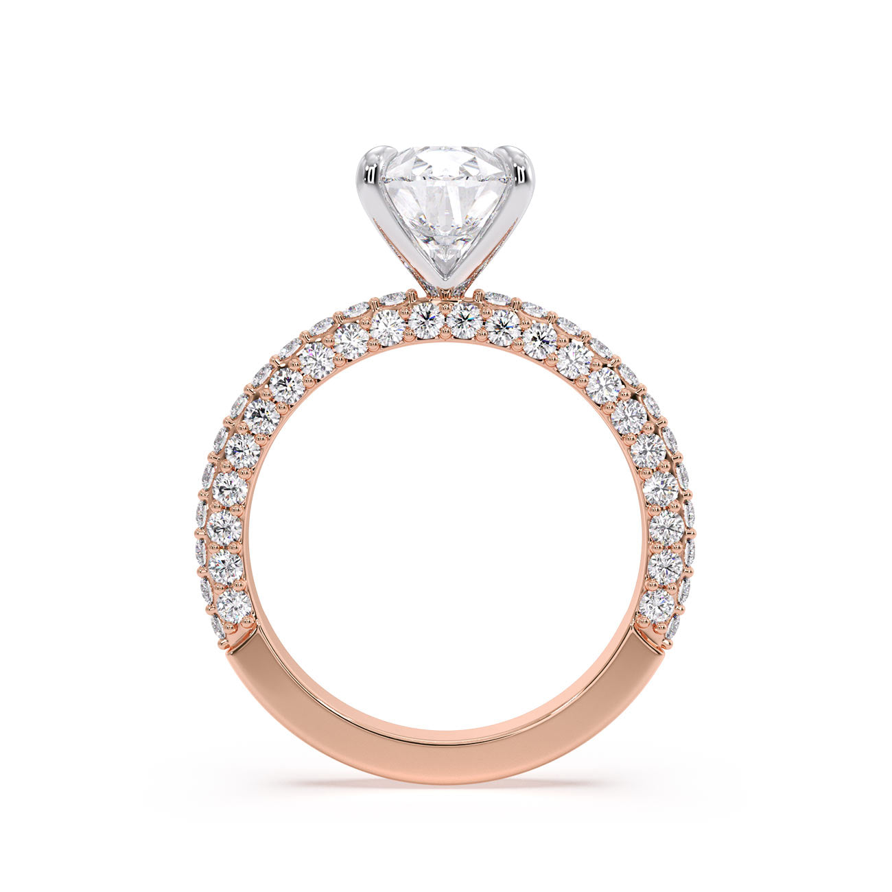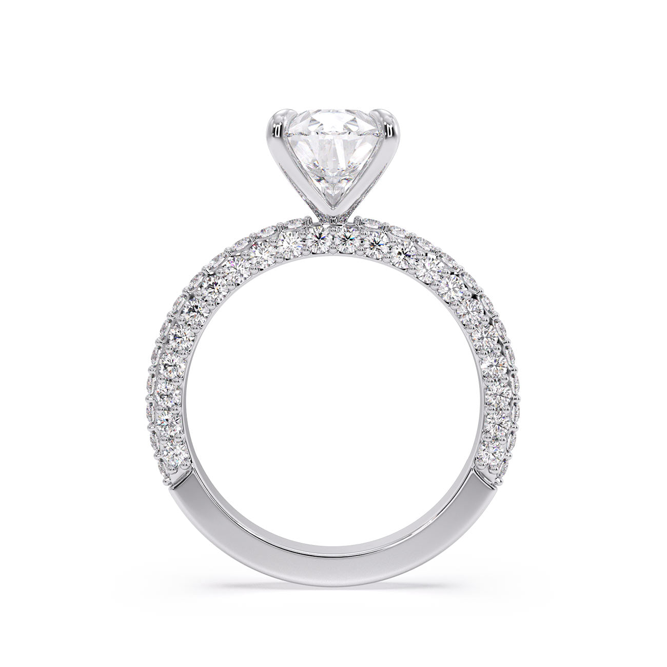 The Angelica engagement ring exudes sophistication with its captivating solitaire design. Radiating breathtaking elegance, Aurora showcases a magnificent triple pavé band, perfectly complemented by a 6-claw setting embracing an exquisite centre stone.