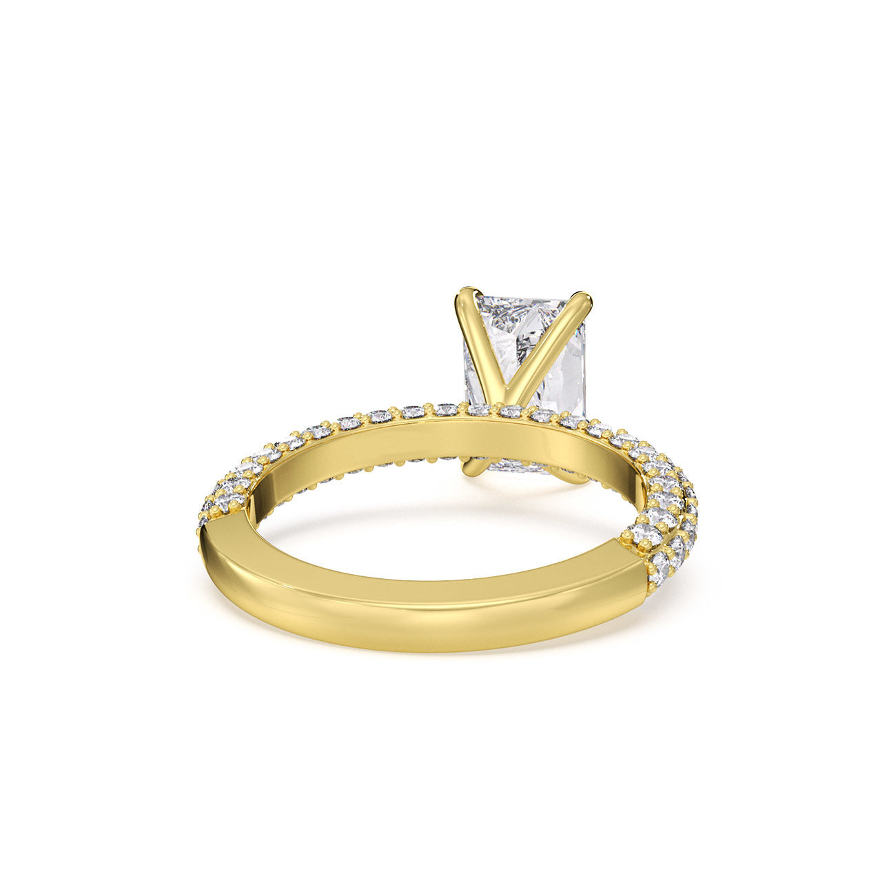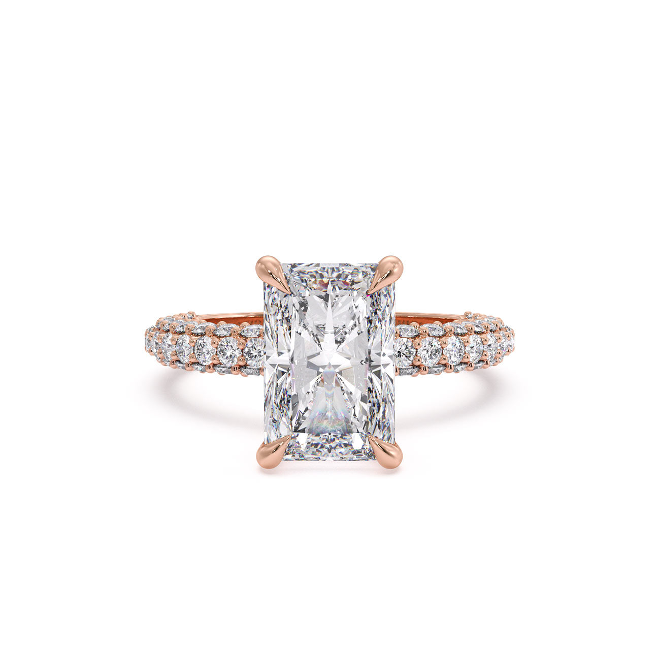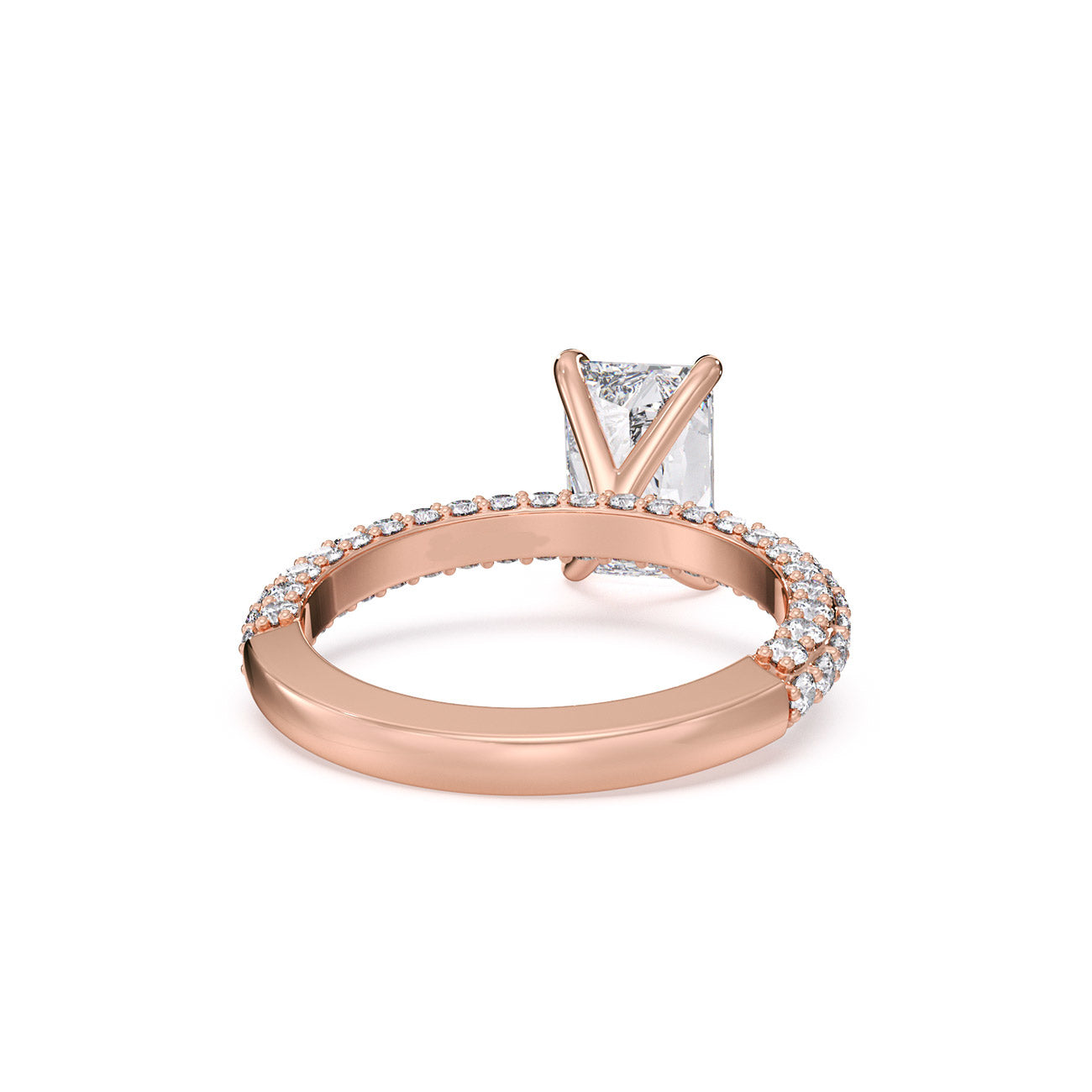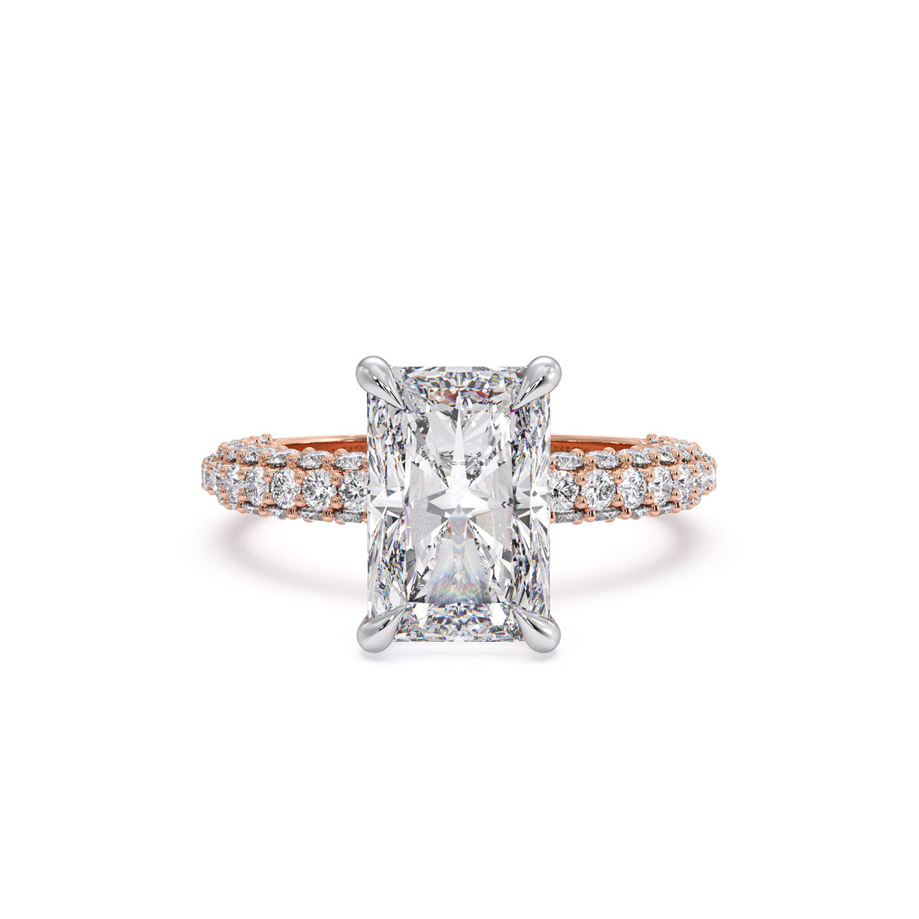 The Angelica engagement ring exudes sophistication with its captivating solitaire design. Radiating breathtaking elegance, Aurora showcases a magnificent triple pavé band, perfectly complemented by a 6-claw setting embracing an exquisite centre stone.
