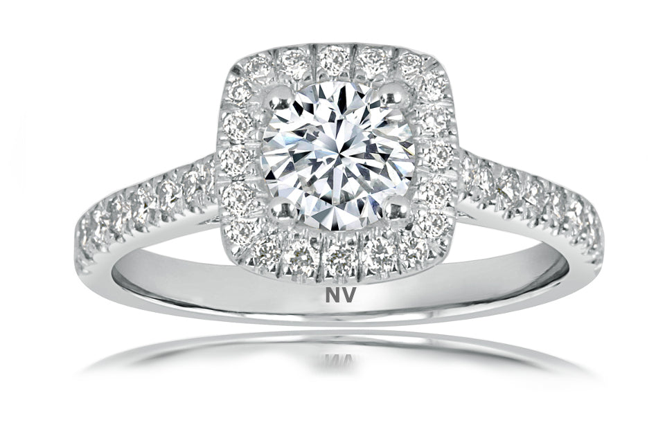 18ct White Gold Ladies Halo engagement ring set with 1x.70ct Round Brilliant cut Diamond, GIA Certified Colour G, Clarity SI1 and 28=.20ct round brilliant cut diamonds.