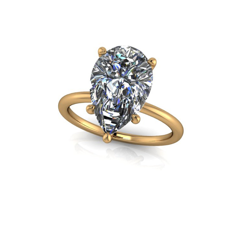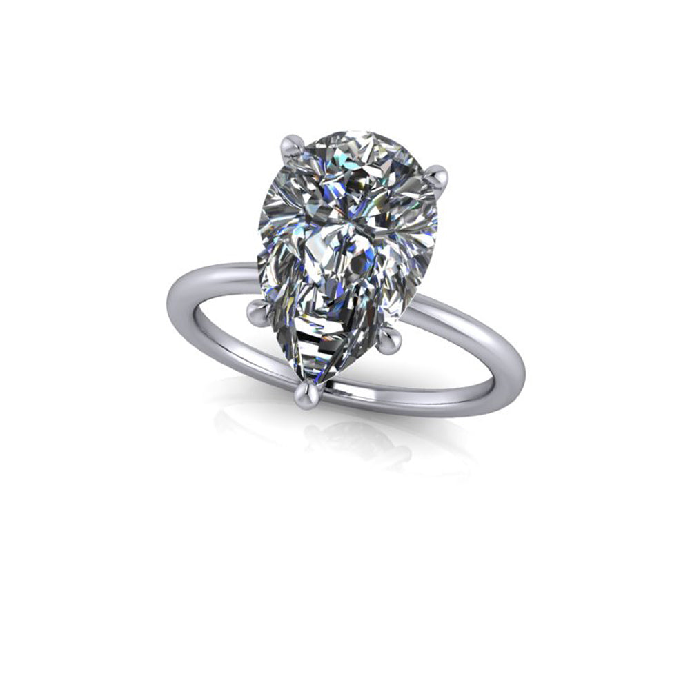 One of the most refined of diamond cuts is the Emerald cut. This is a classic Ladies engagement ring with the Emerald cut set in four claws on a 2mm wide half round sweeping up band. The image shown is a 2.00ct diamond.