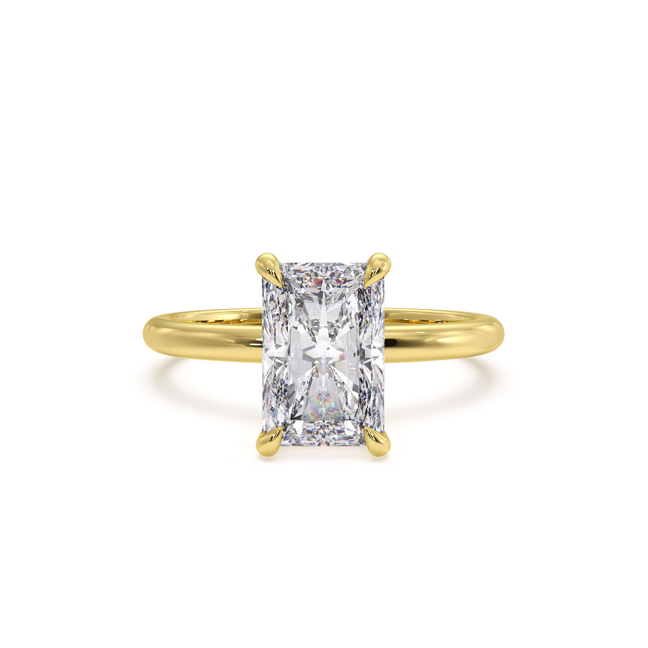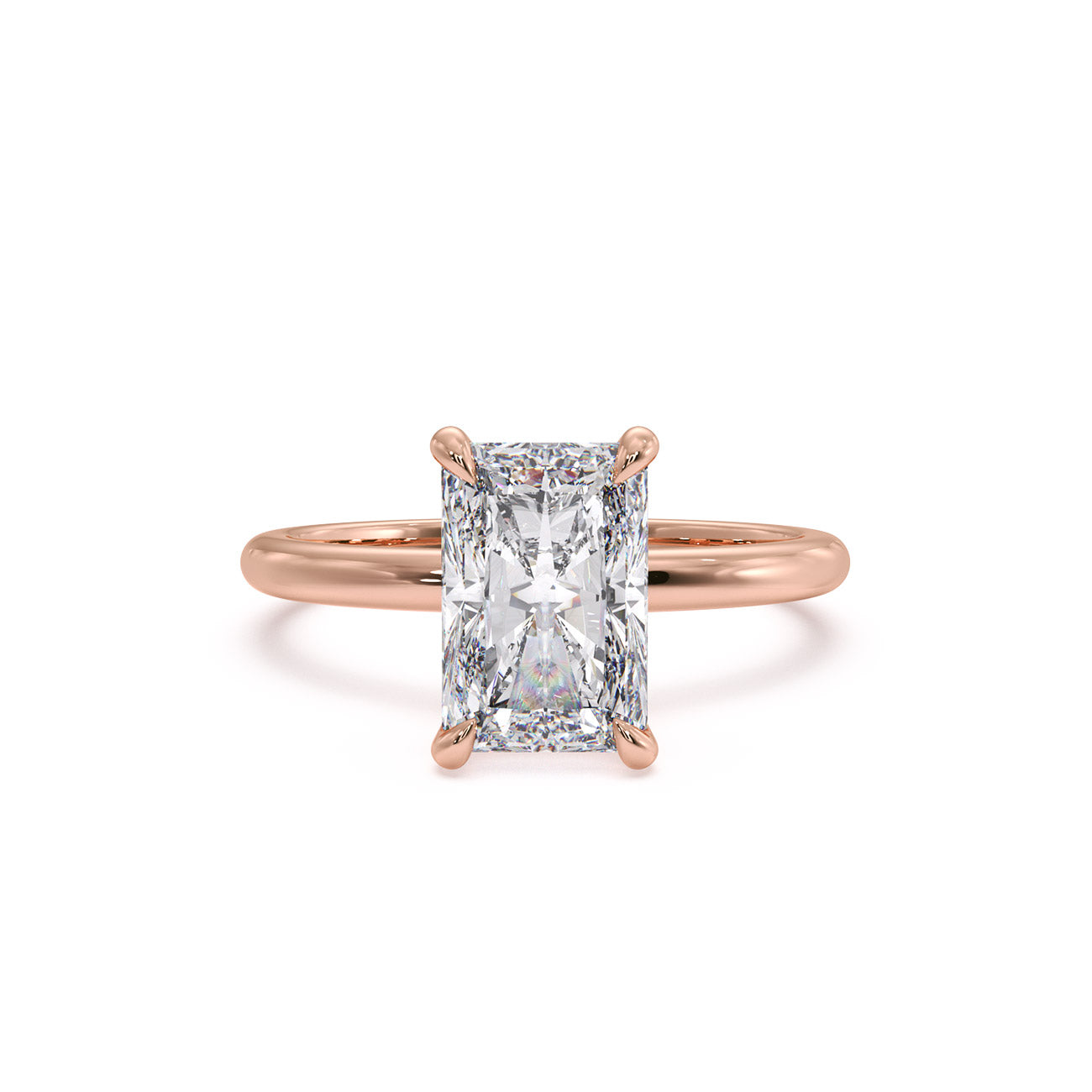 Emma showcases an exquisitely simple solitaire design, highlighting the centre stone. Nestled in a refined four-claw setting, the centre stone elegantly graces the band with its understated presence.