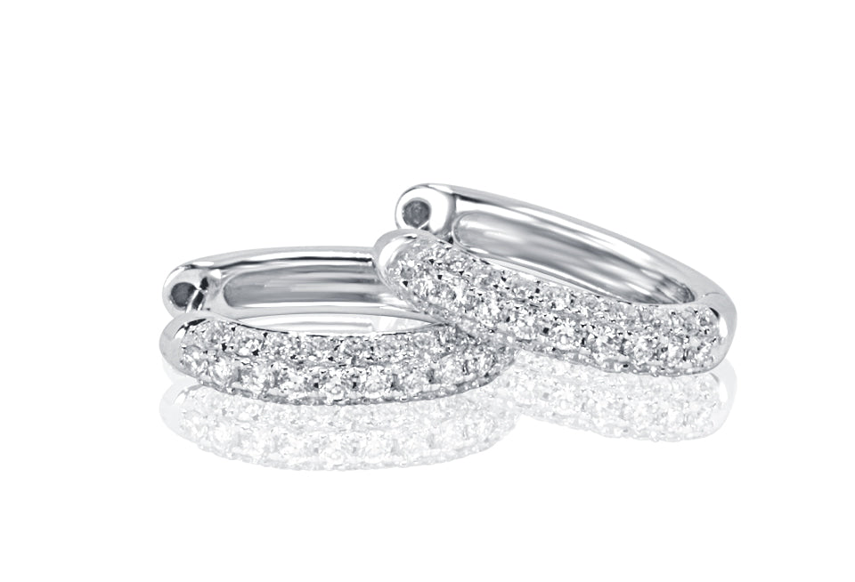 18ct White Gold Ladies Hoop Design Earrings set with 60=.46ct round Brilliant cut Diamonds
