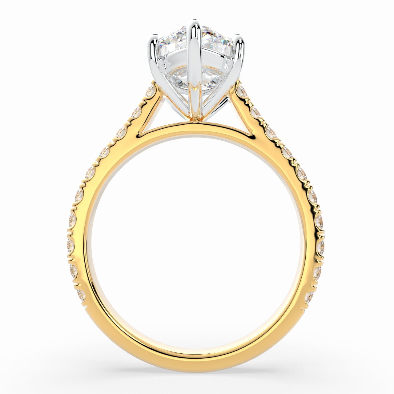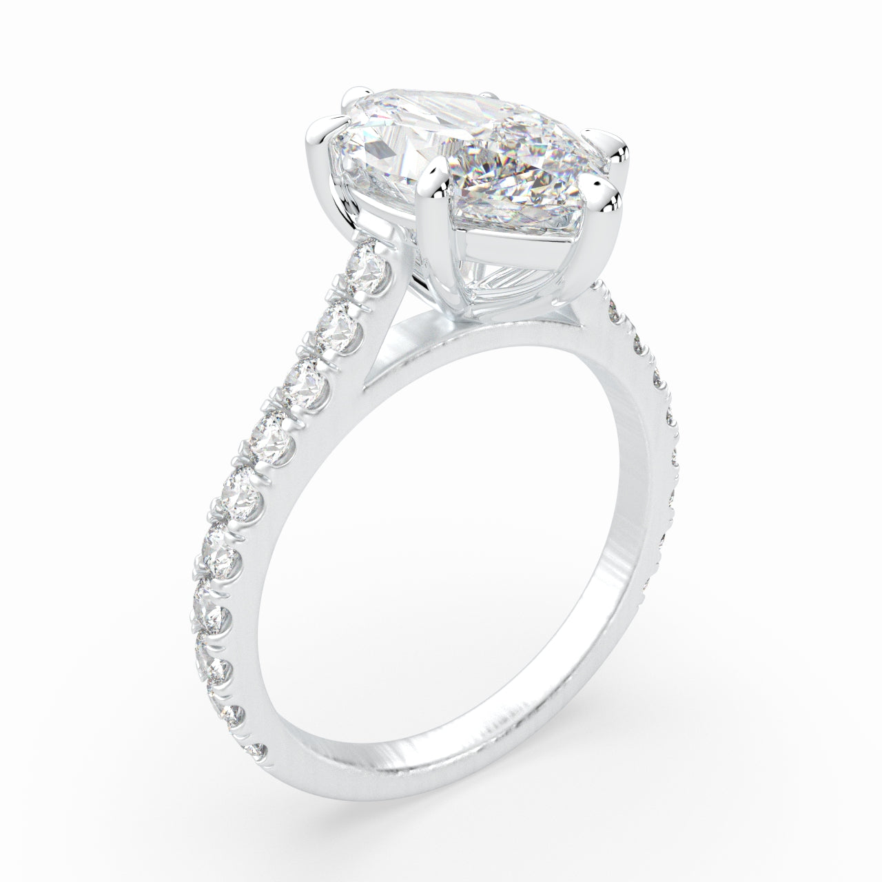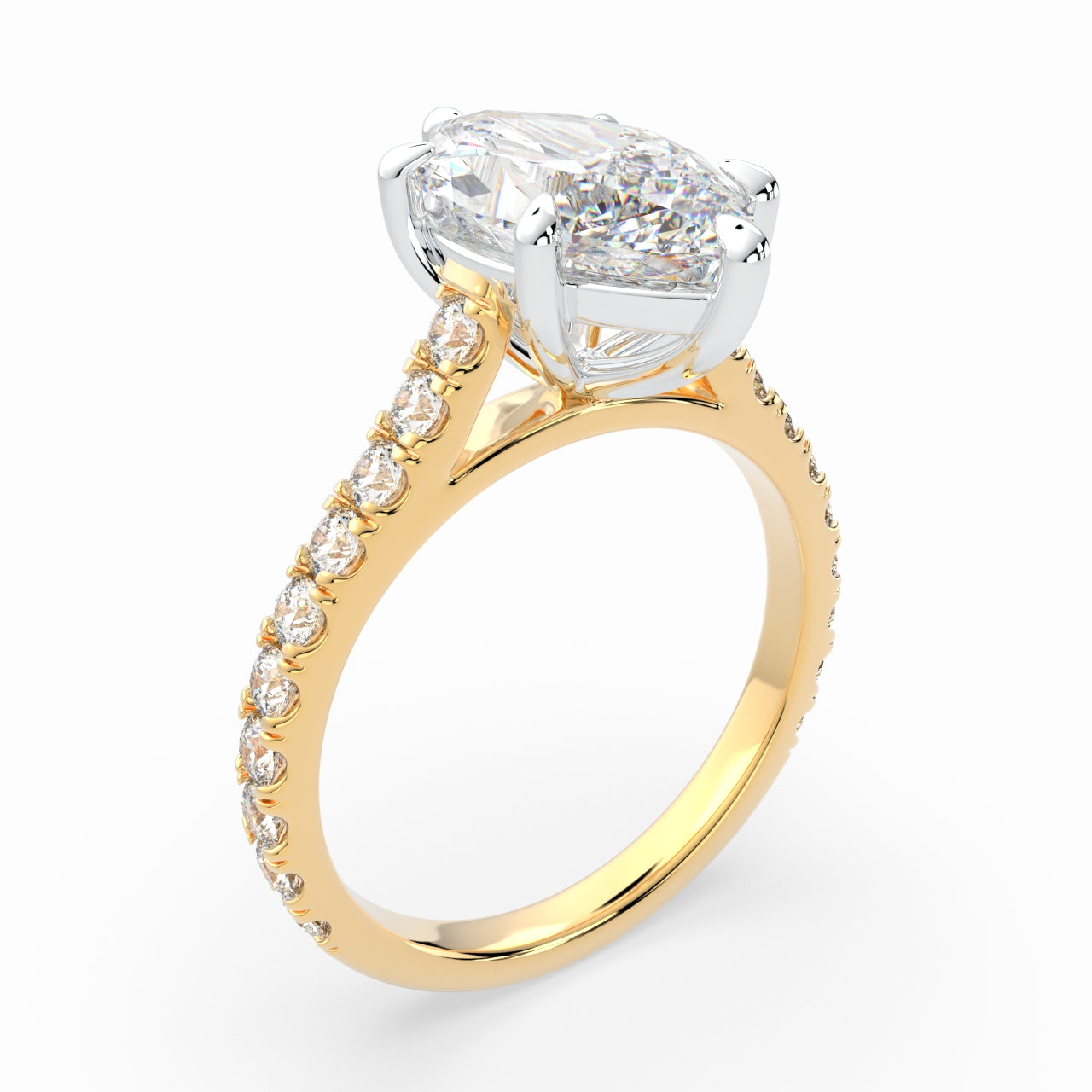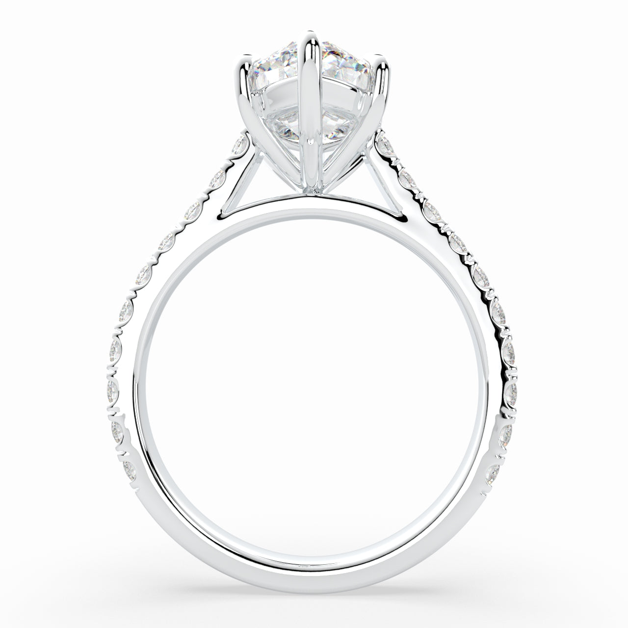 Marquise Solitaire Cathedral Engagement Ring with diamonds on band LR007