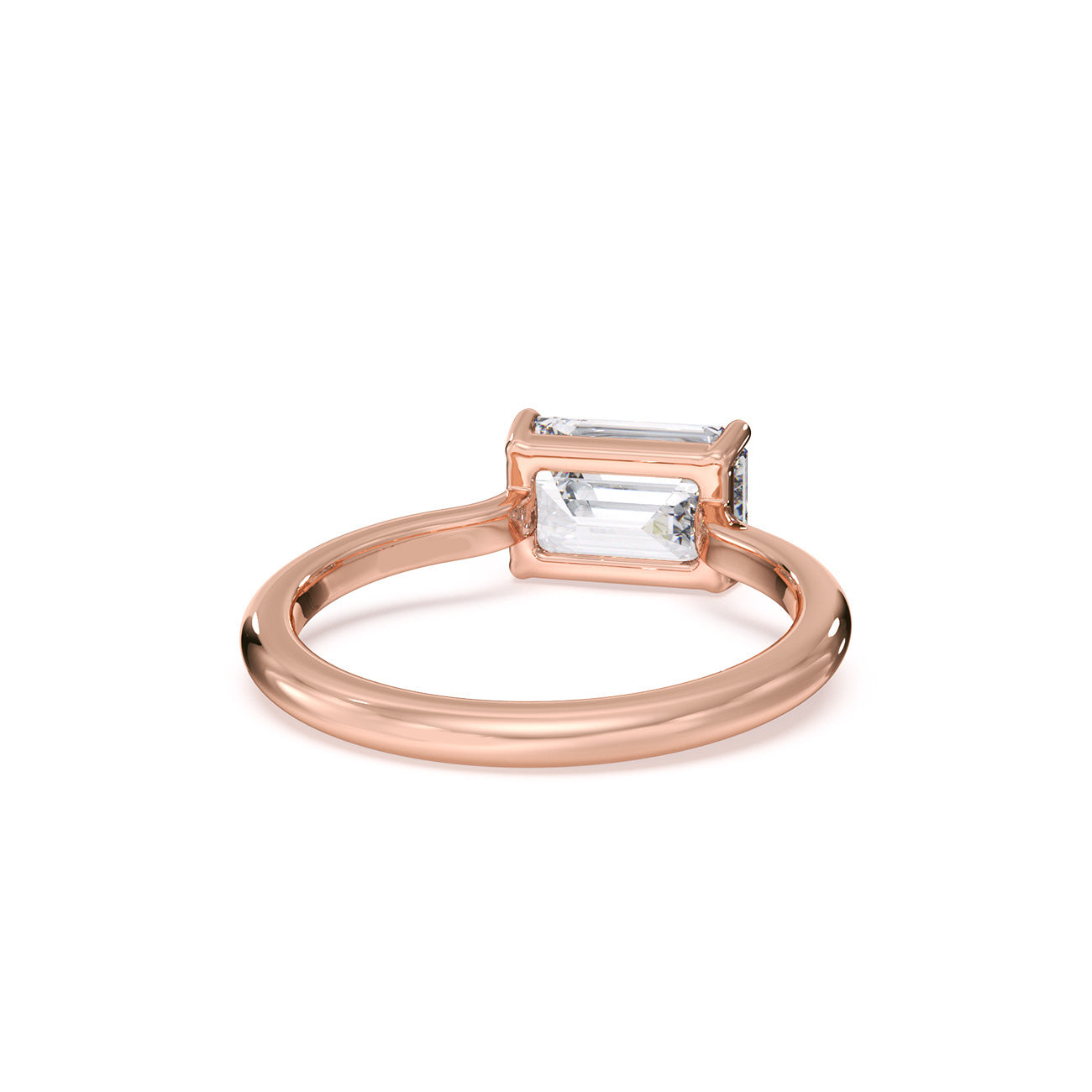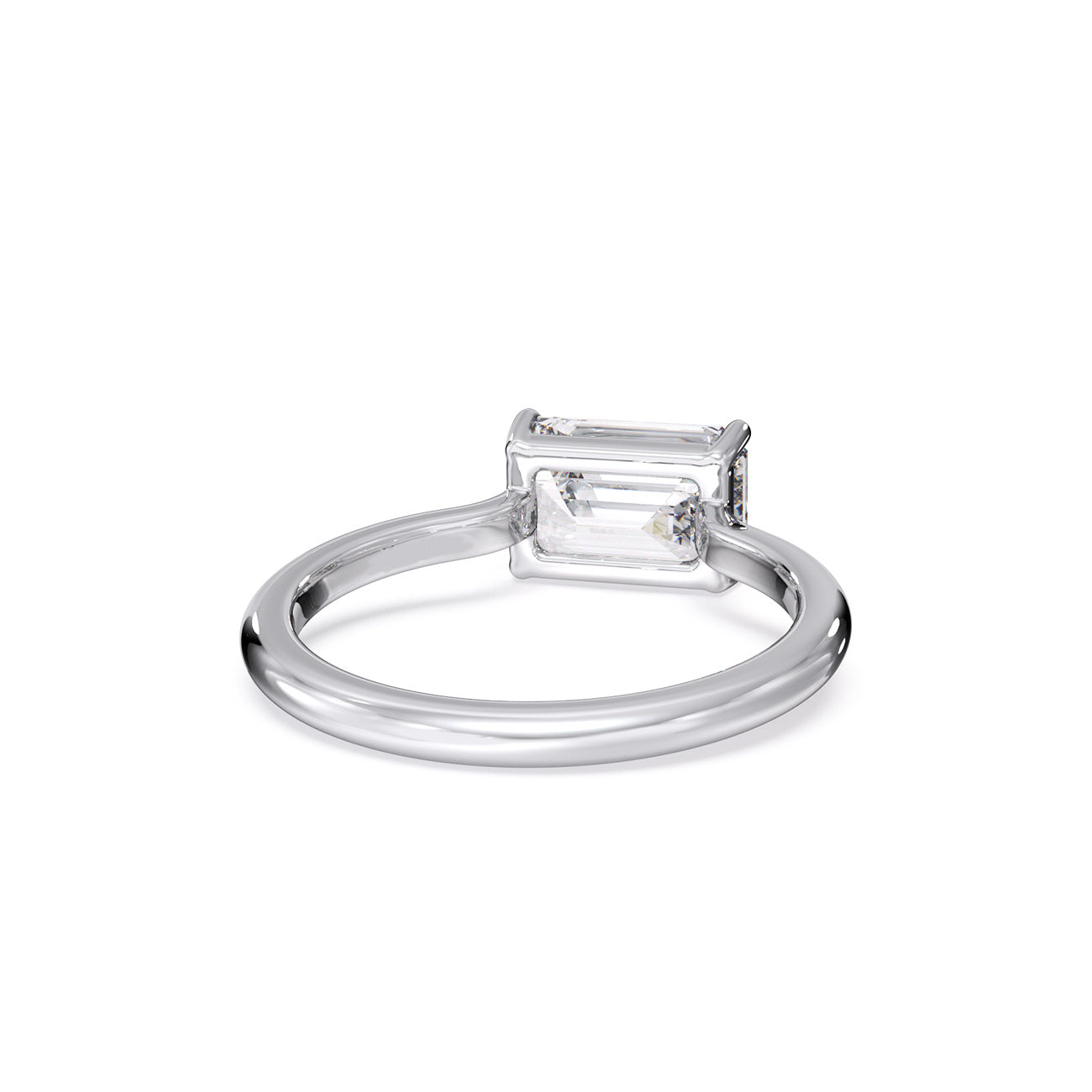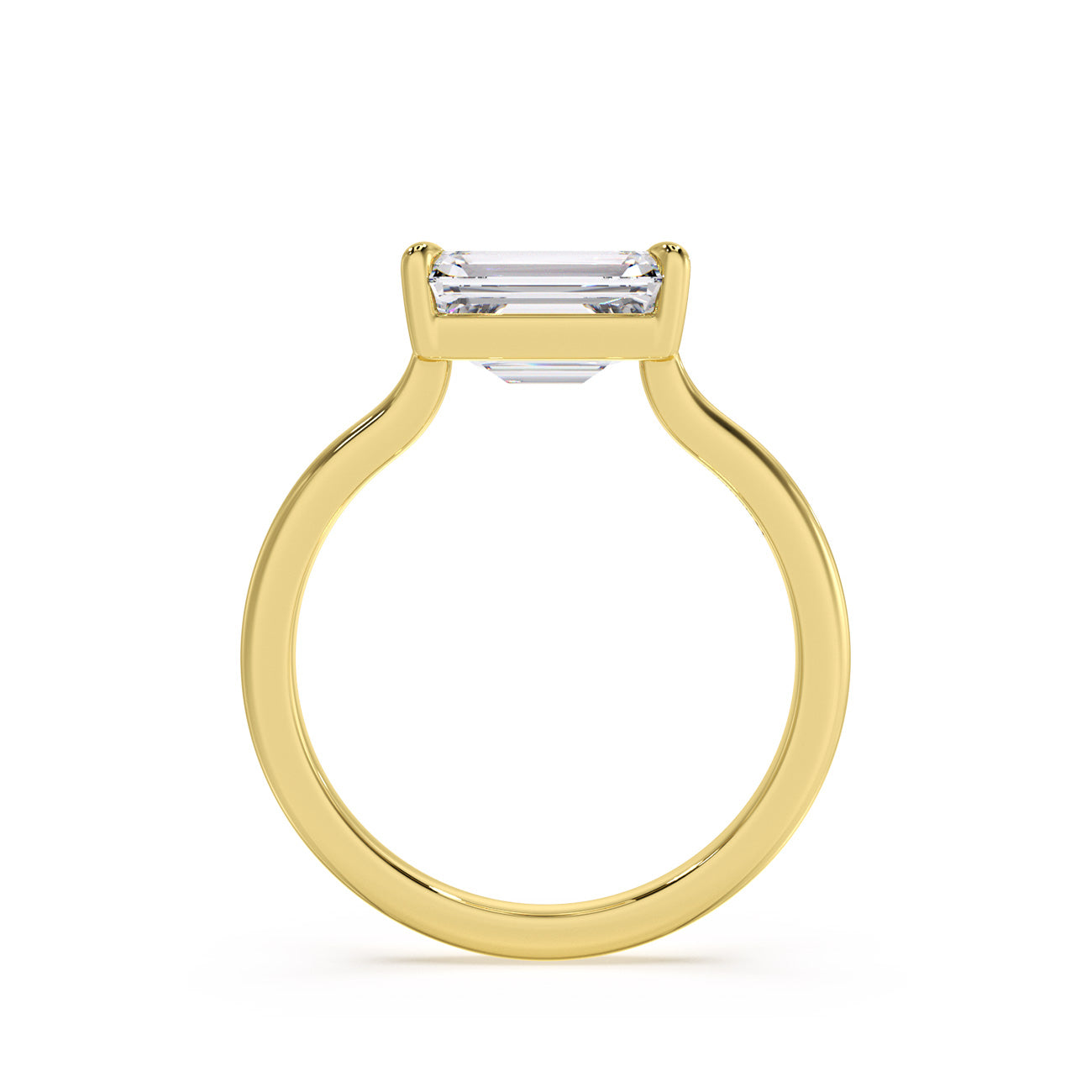 The Mercy engagement ring represents our distinctive east-west design. This elegant four-claw setting brings a contemporary twist to the classic solitaire ring, adding a sense of direction to its traditional appeal. Illustrated with a stunning emerald-cut gem nestled on a sleek, polished band, Mercy exemplifies modern elegance with its simplicity.