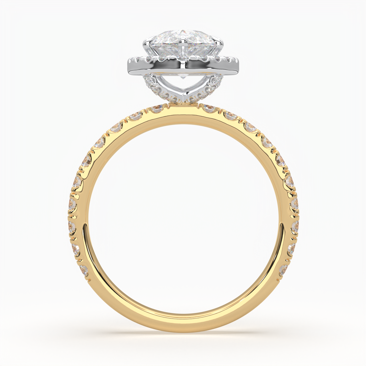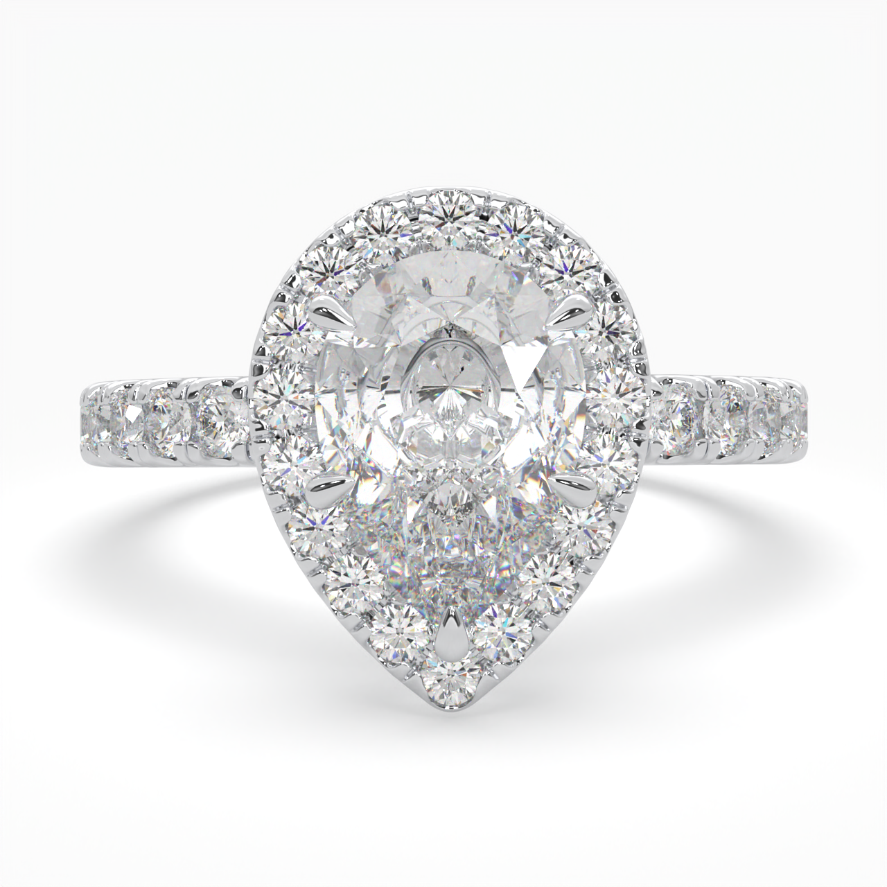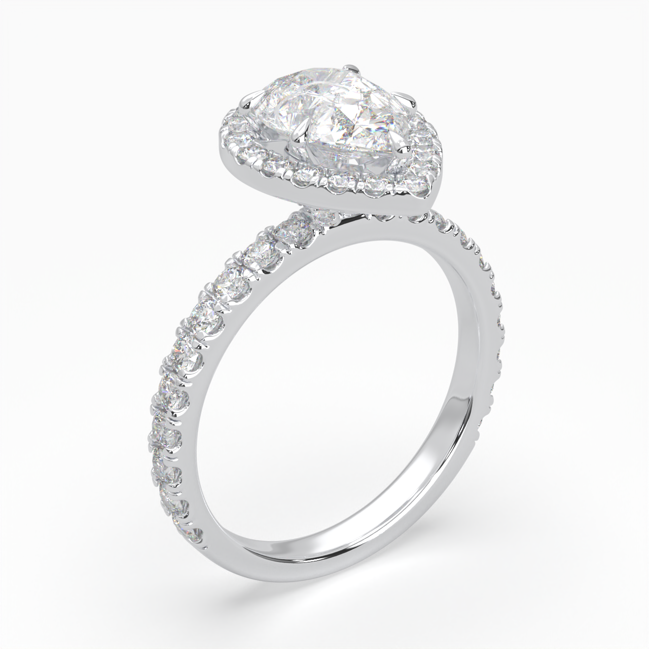 Pear Shape Halo Cluster Ring set with accent diamonds on band and setting LR031R
