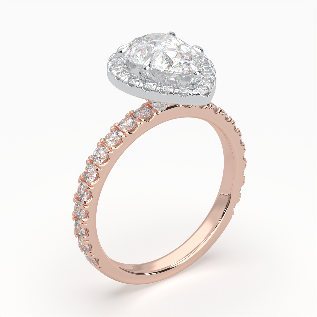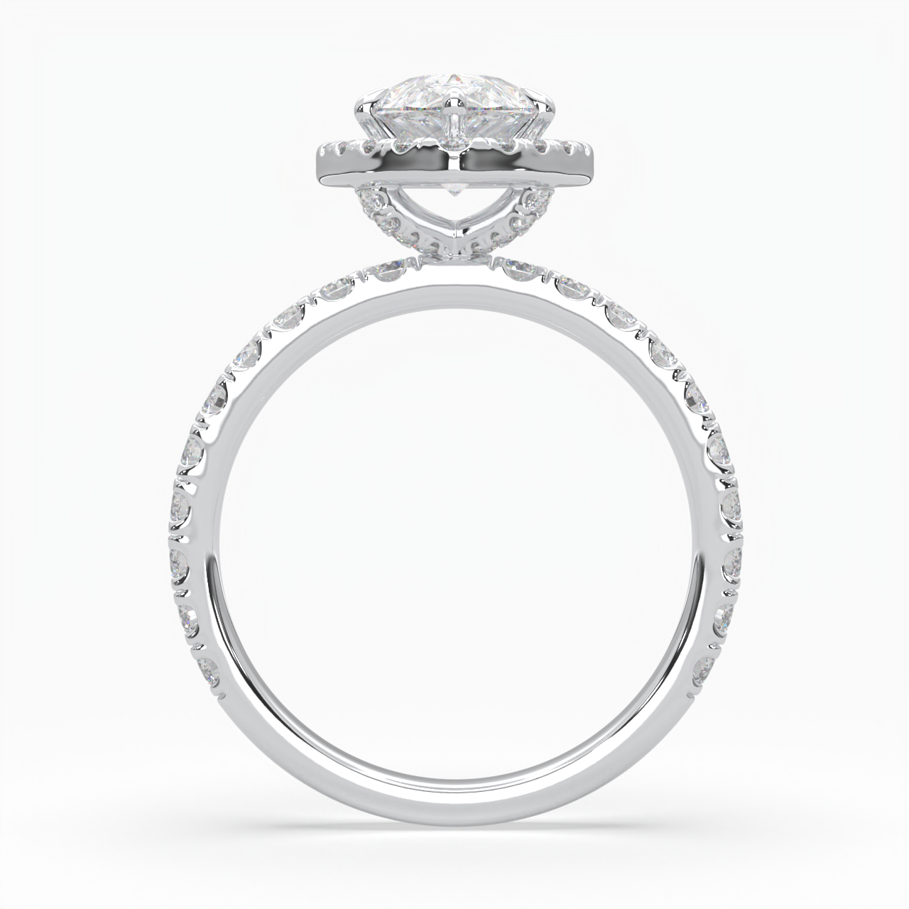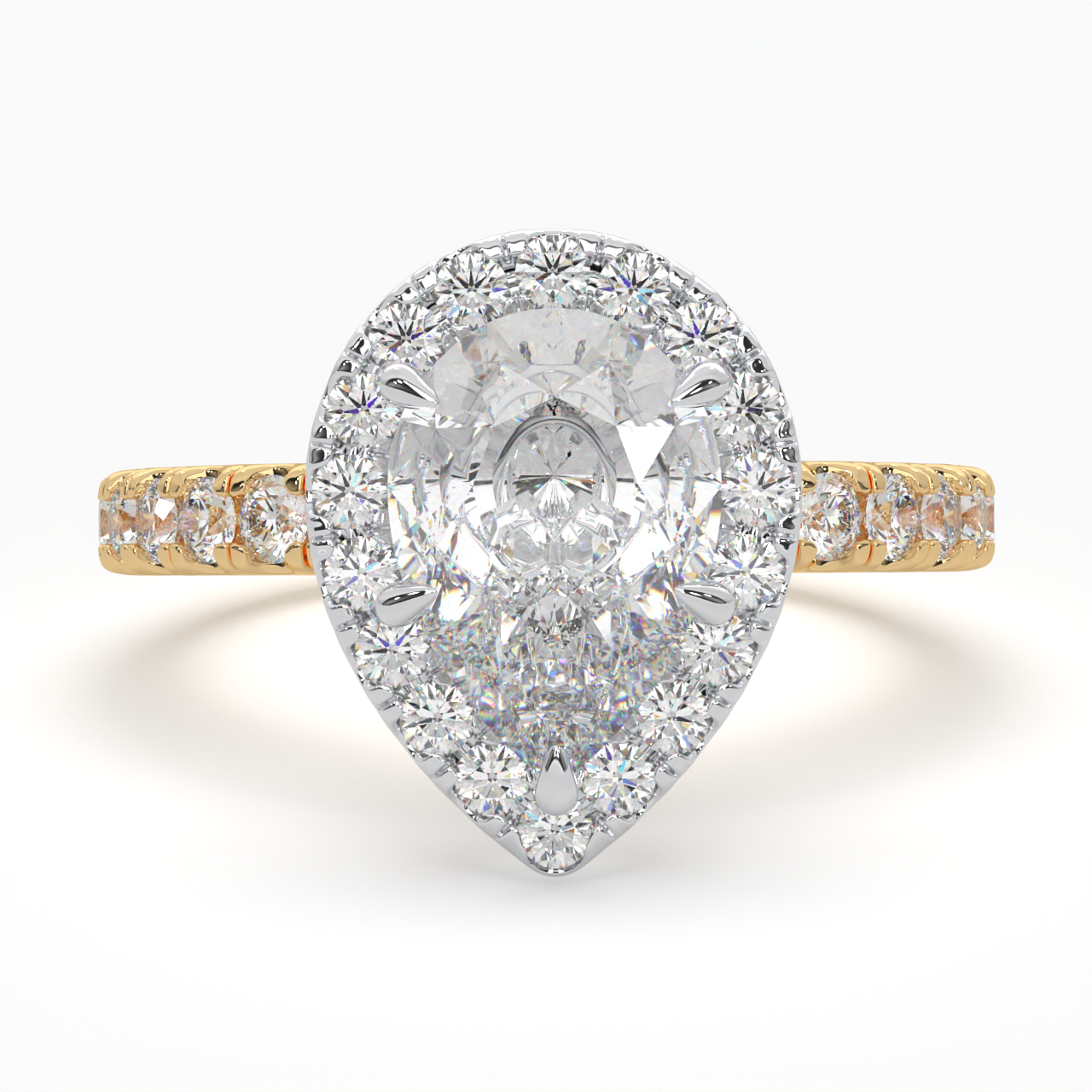 Pear Shape Halo Cluster Ring set with accent diamonds on band and setting LR031Y
