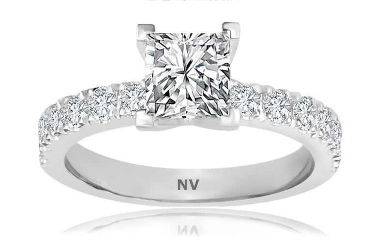 18ct White Gold Ladies engagement ring set with 1x.77ct Princess cut Diamond, GIA Certified Colour H, Clarity SI2 and 14=.56ct round brilliant cut diamond