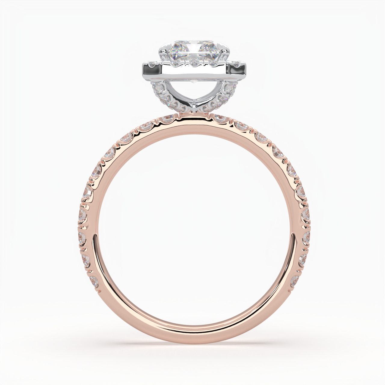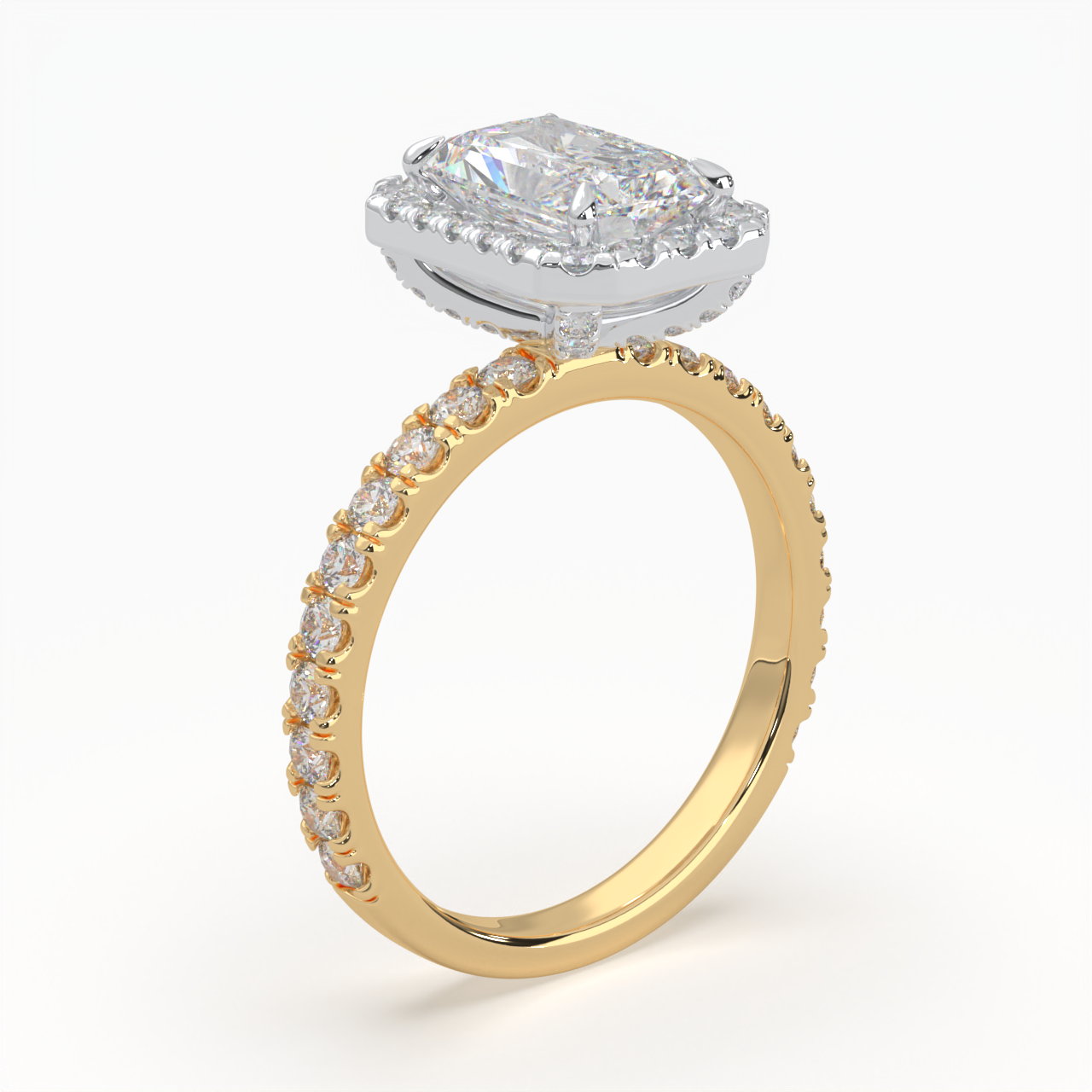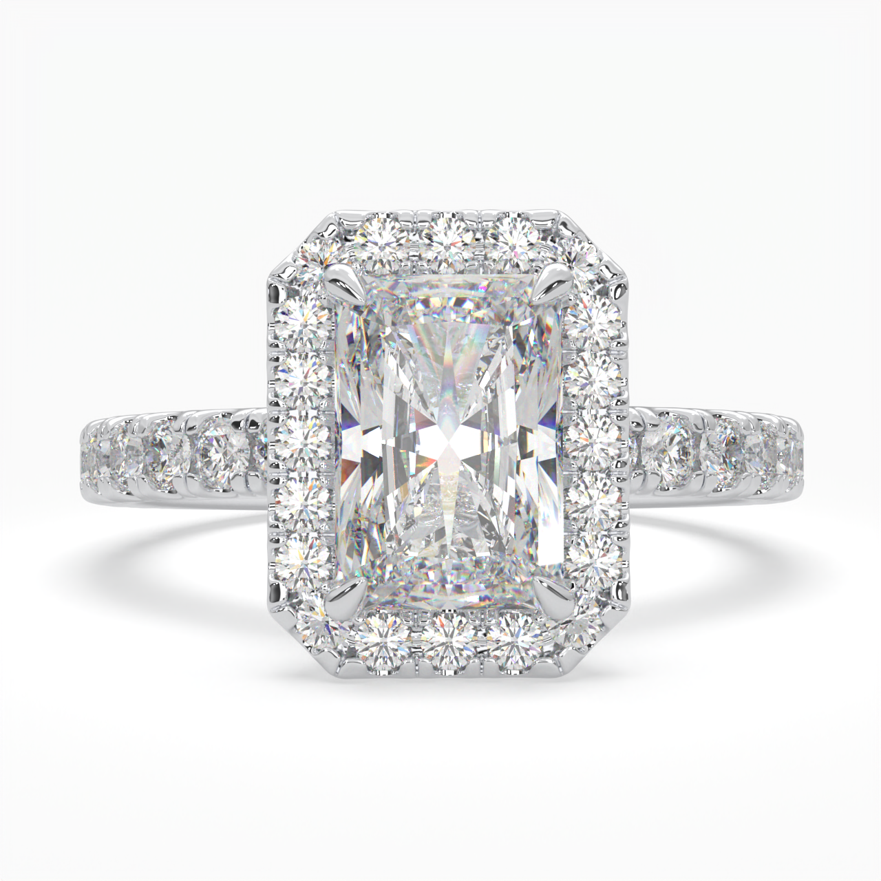Radiant Cut Halo Cluster Ring set with accent diamonds on band and setting LR033Y