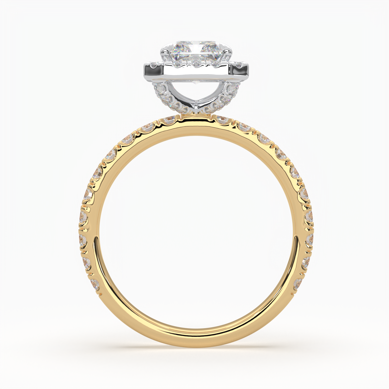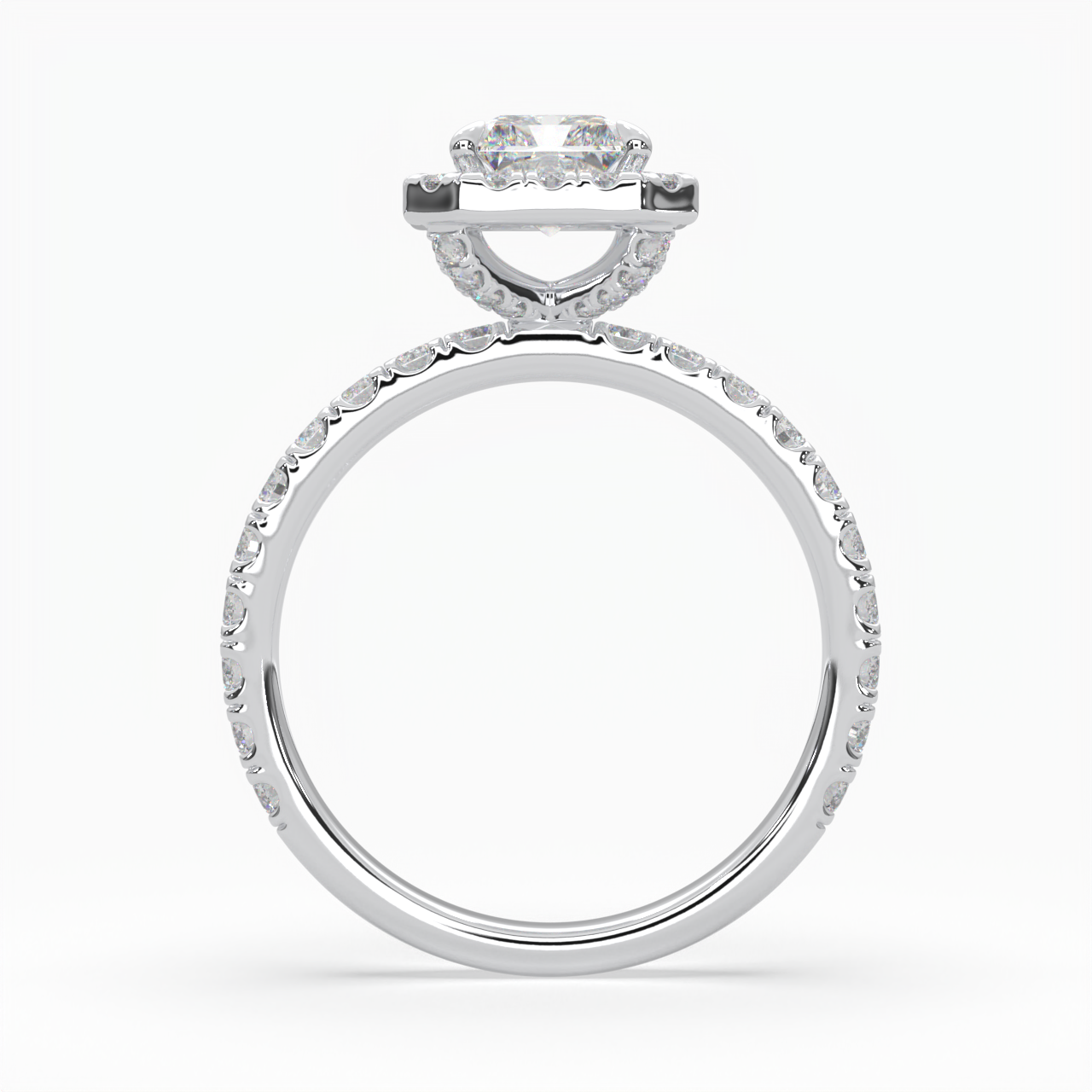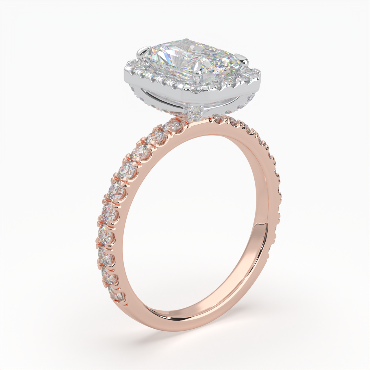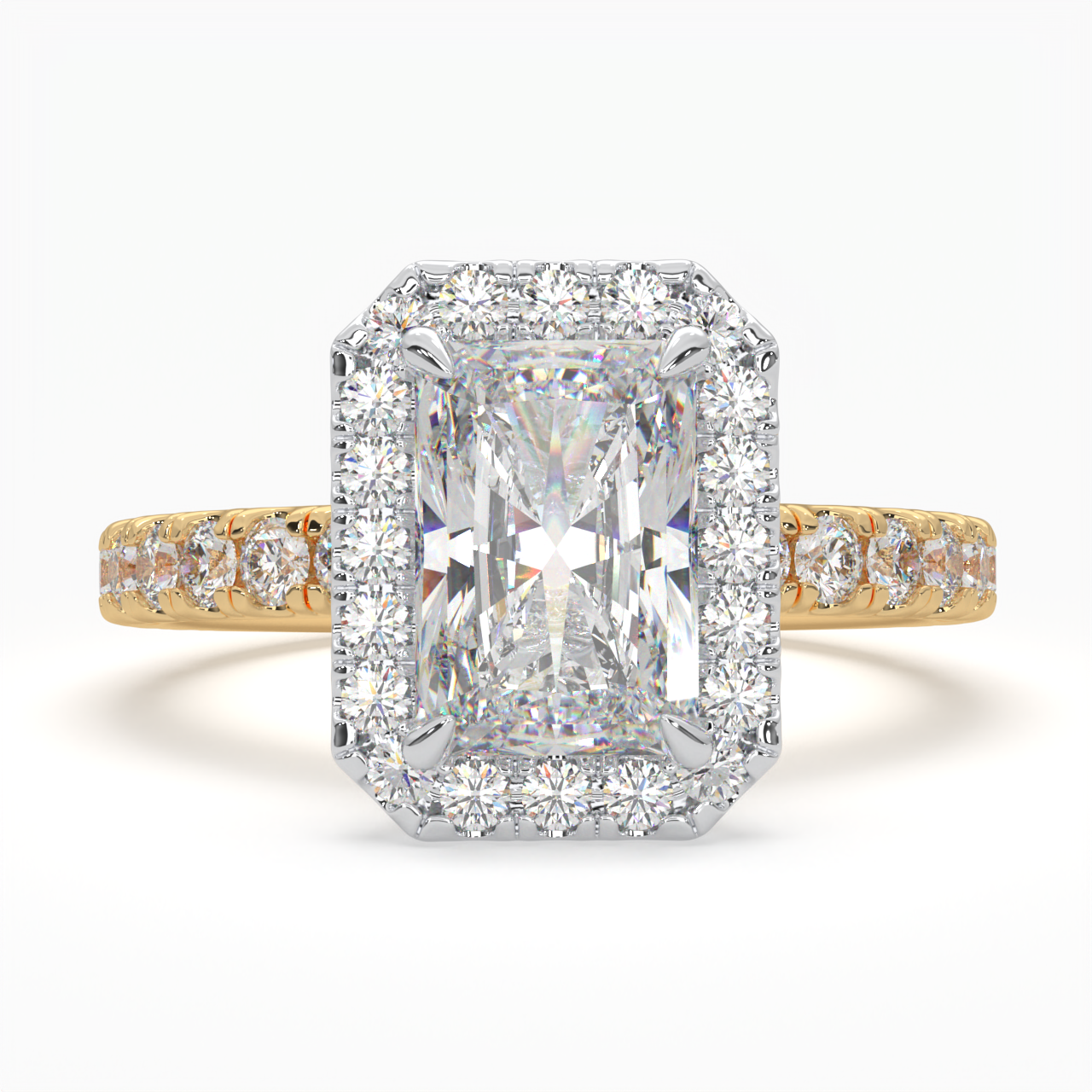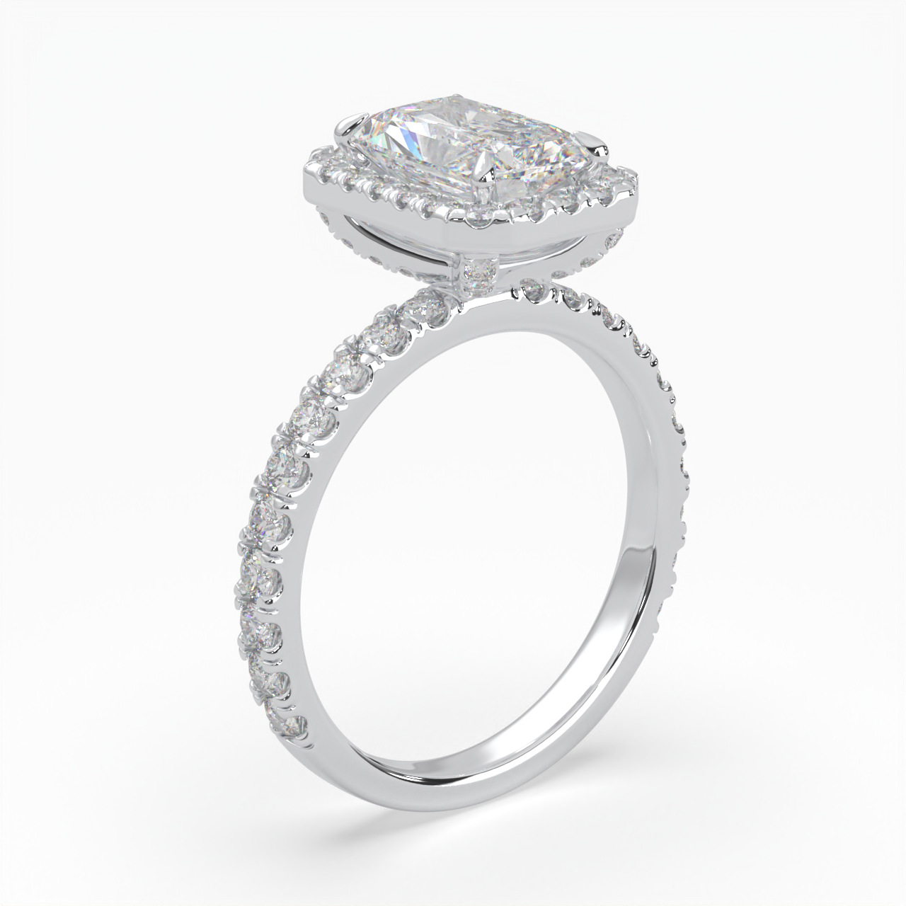 Radiant Cut Halo Cluster Ring set with accent diamonds on band and setting LR033R