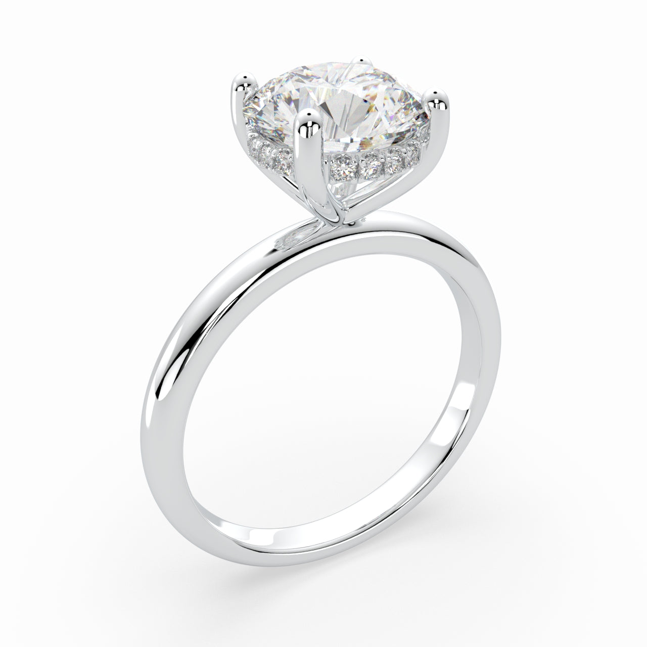 Round Solitaire Engagement Ring with hidden halo LR019W