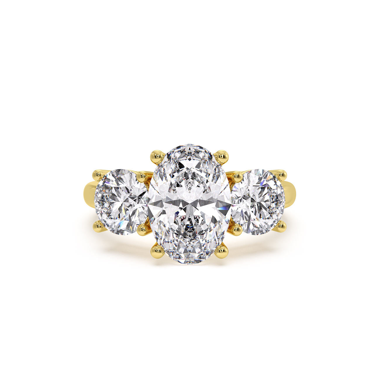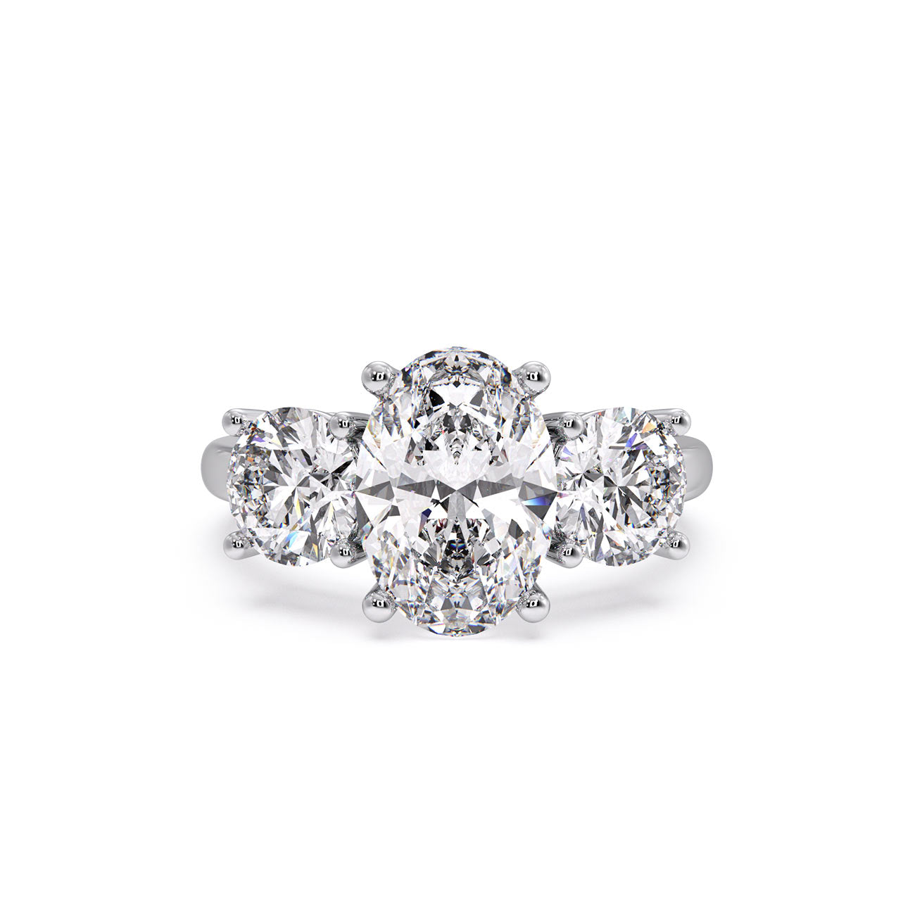 Lily embodies timeless elegance in the realm of fine jewellery. Featured with a striking Oval centre stone and two exquisite round-cut side stones, Lily's design pays homage to tradition while embracing the advancements of modern technology. The distinguished design is complemented by the setting and a refined band, bringing it to its full splendour.