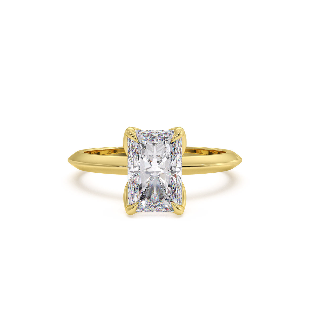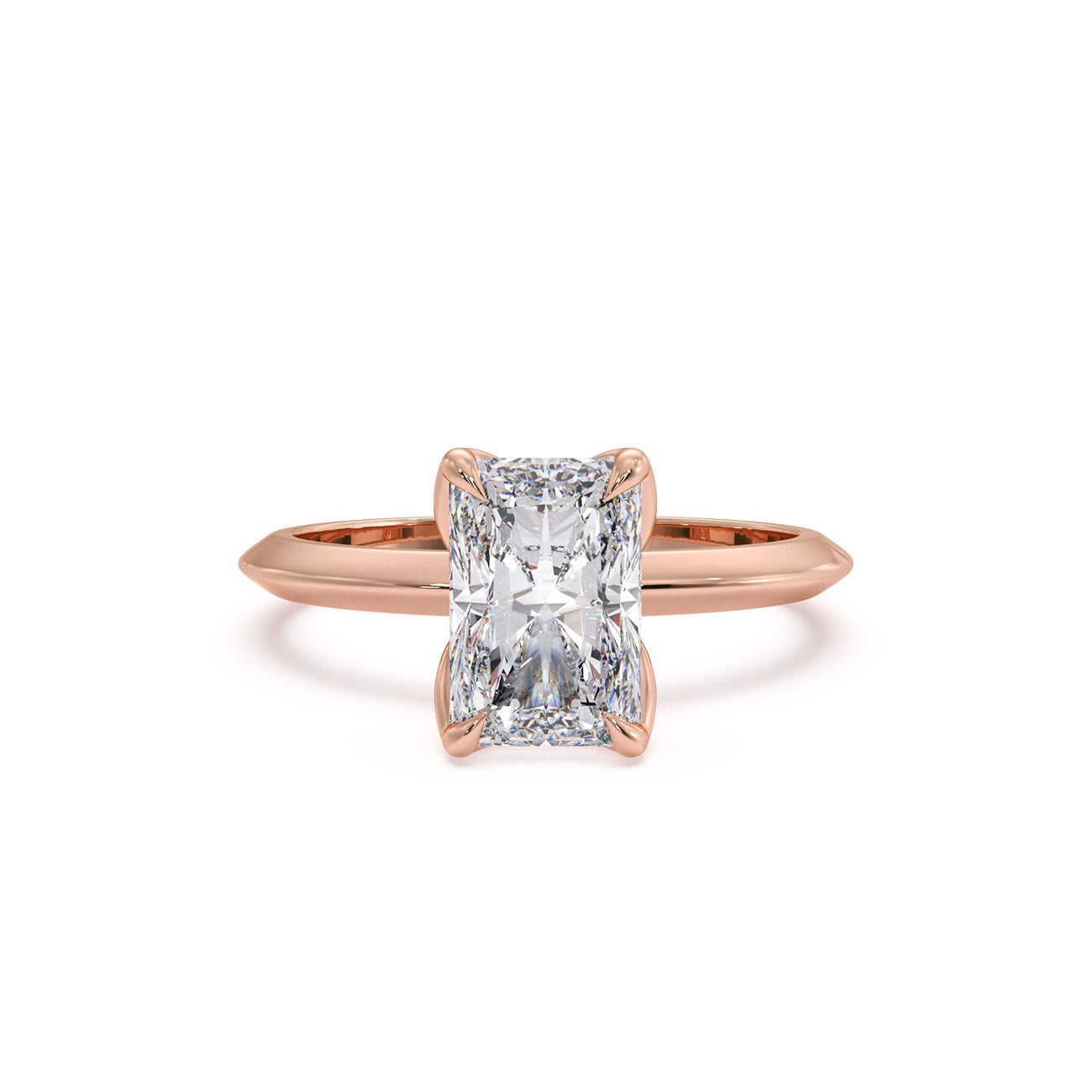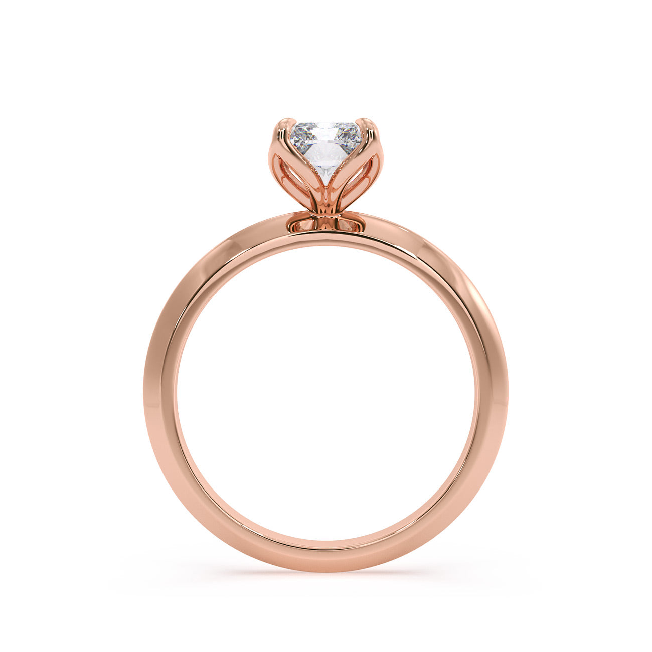 Tia presents a charming solitaire engagement ring distinguished by its uniquely feminine tulip design and a knife-edge band. Held by four delicate eagle-tipped claws, the breathtaking centre stone is showcased atop a sleek band, exuding elegance from every angle.