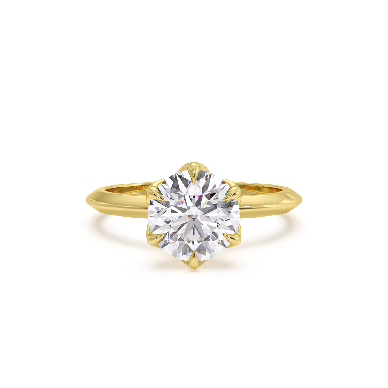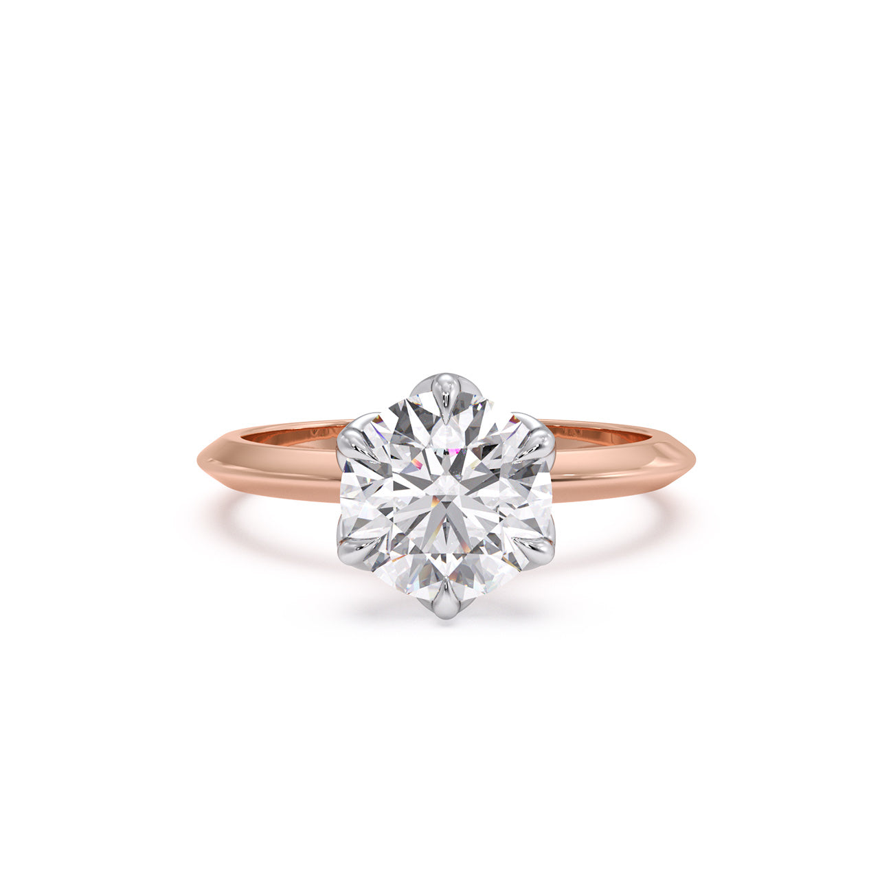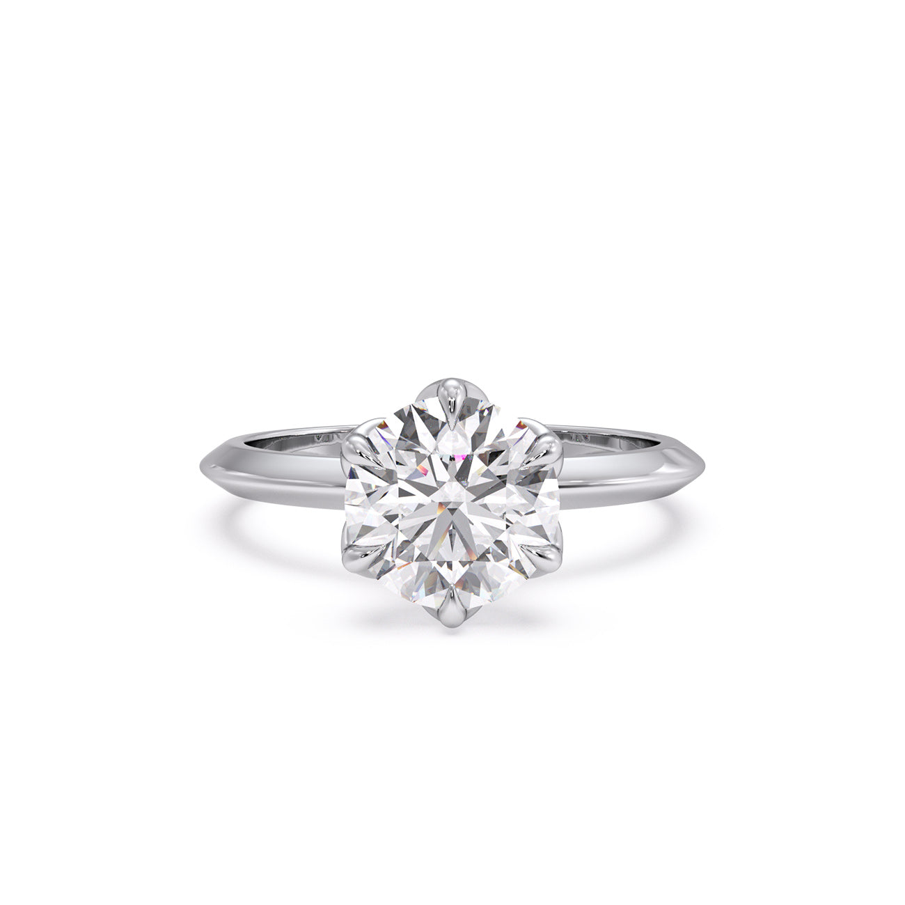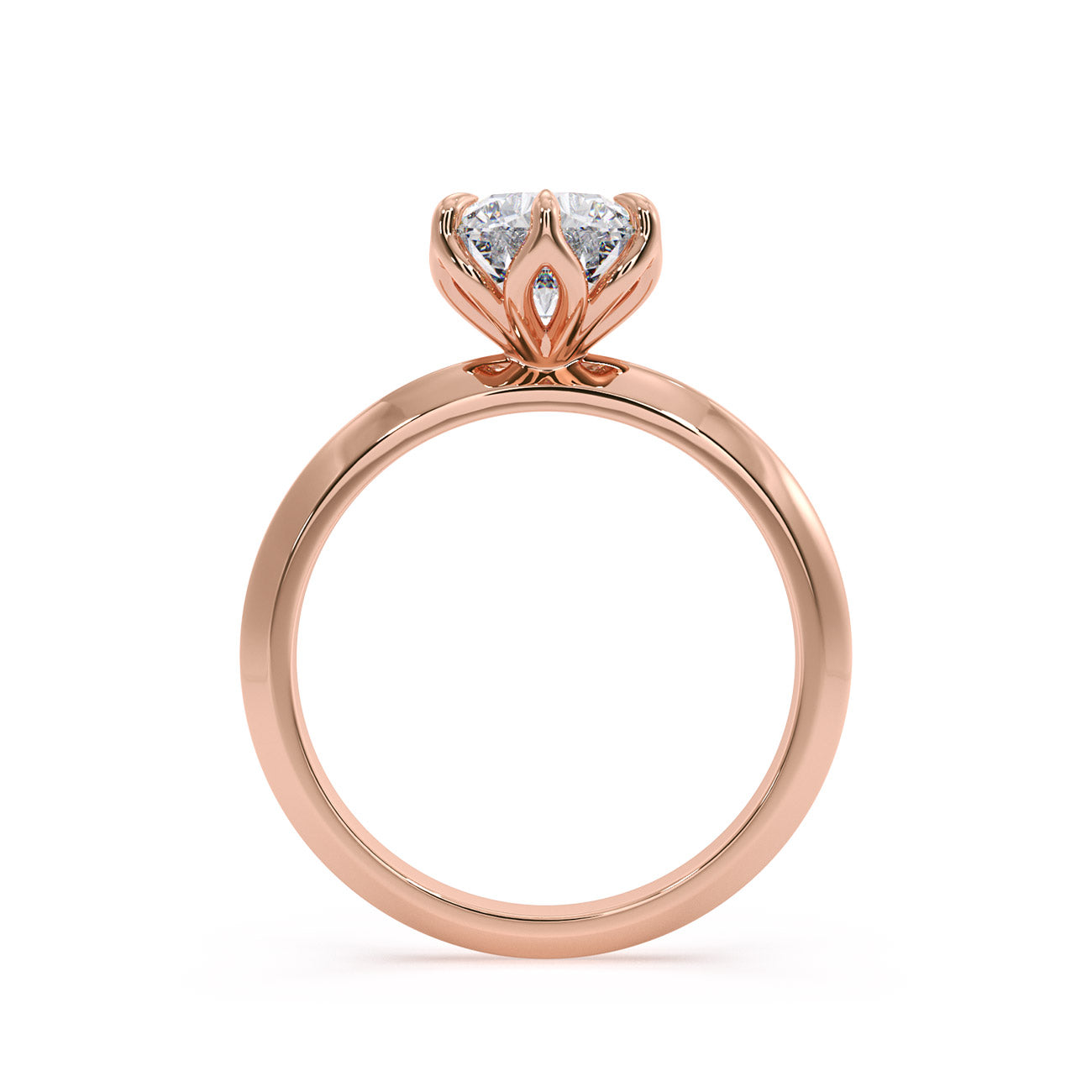 Tia presents a charming solitaire engagement ring distinguished by its uniquely feminine tulip design and a knife-edge band. Held by four delicate eagle-tipped claws, the breathtaking centre stone is showcased atop a sleek band, exuding elegance from every angle.